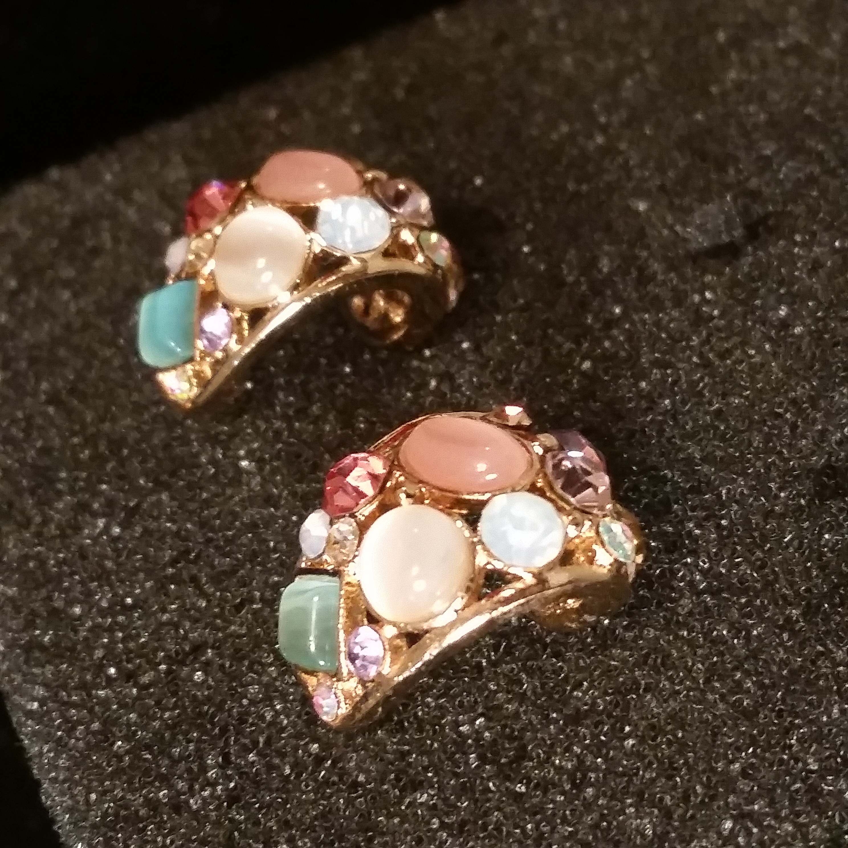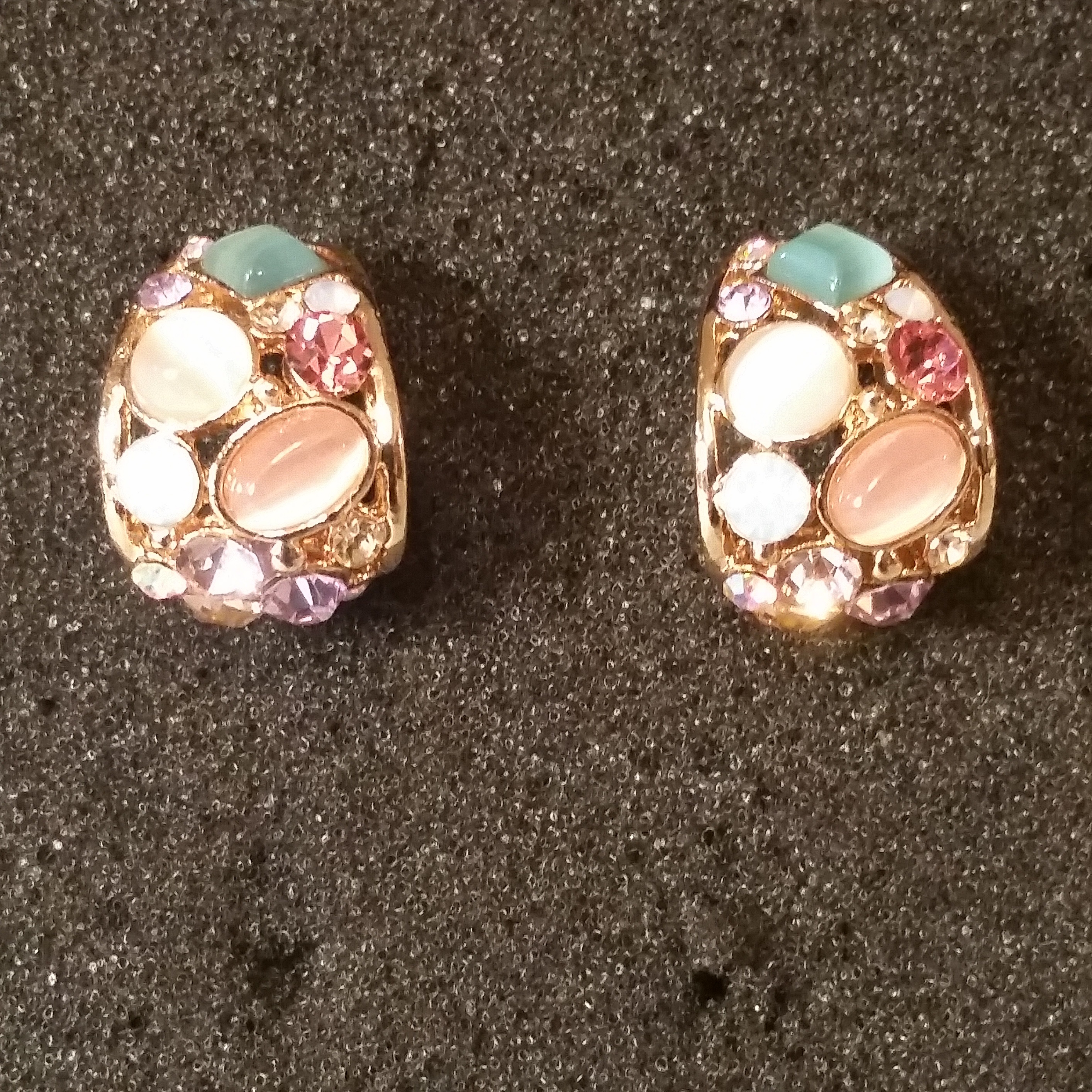 GOLDEN ZINC ALLOY , MULTICOLORED OPALS AND CRYSTAL RHNSTNS STUD EARRING