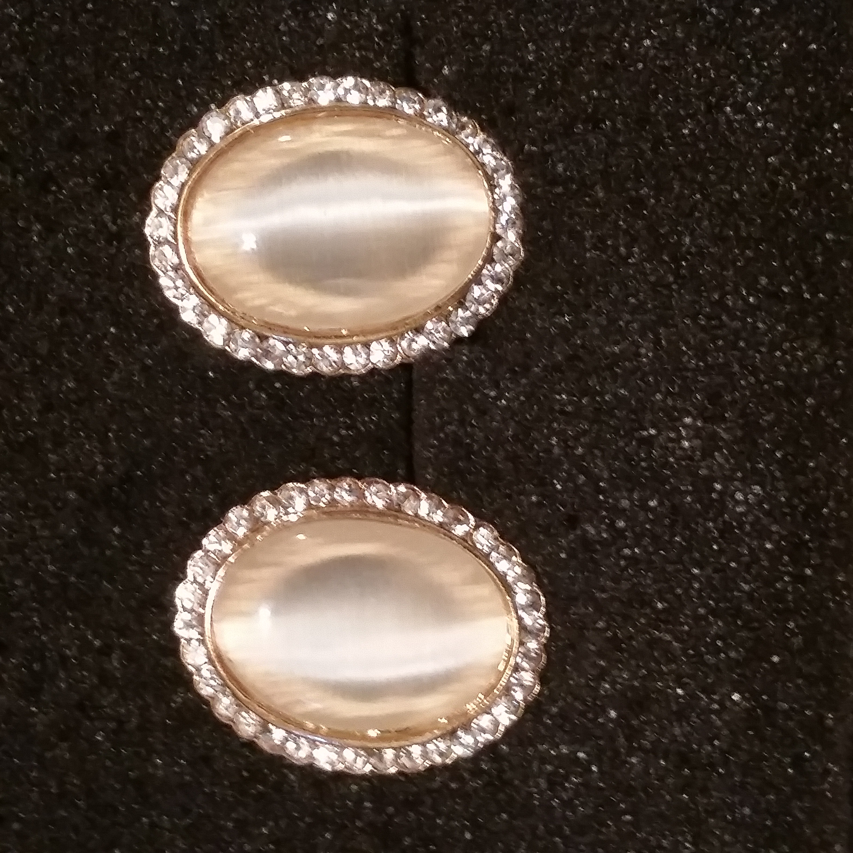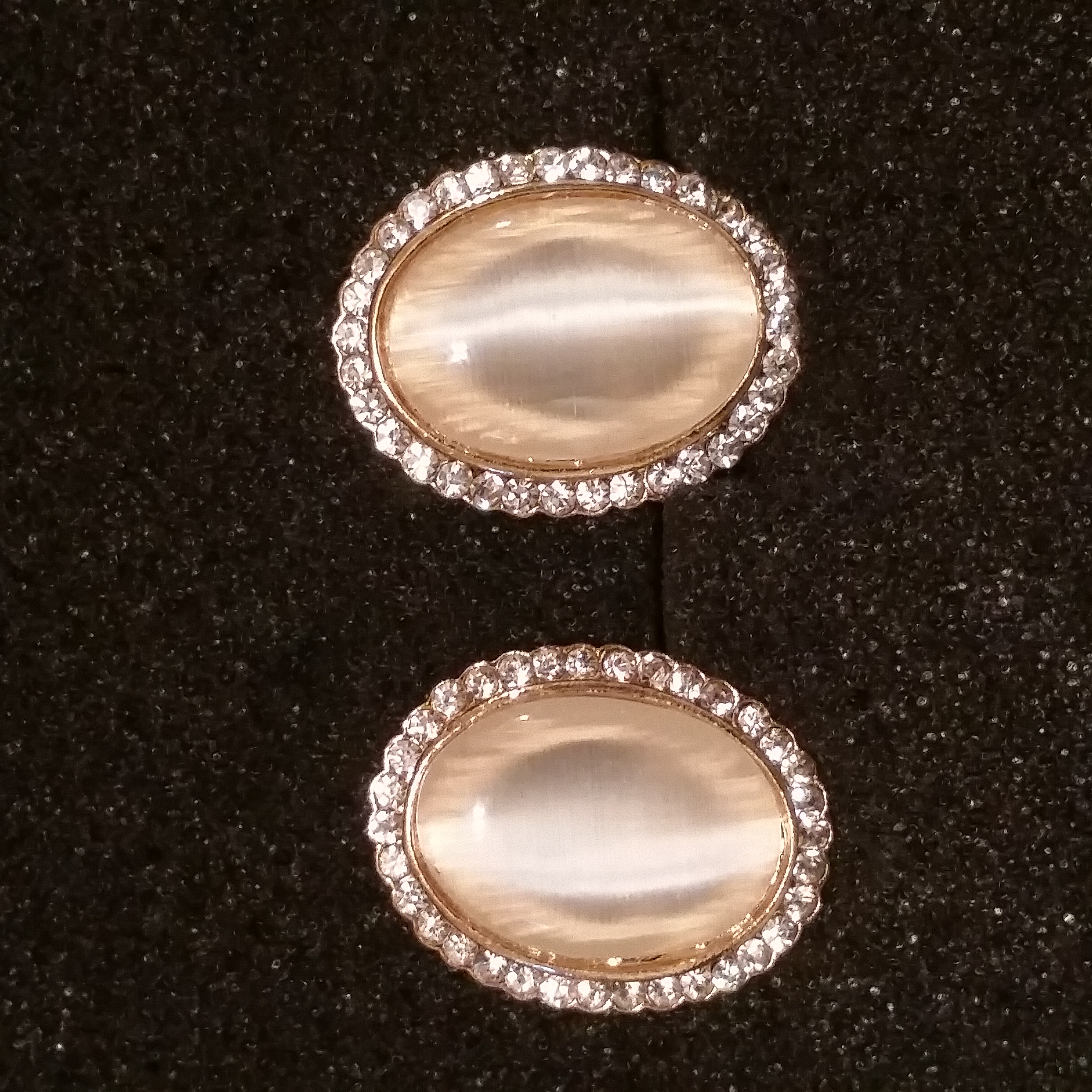 GOLDEN ZINC ALLOY, OVAL OPAL RURROUNDED BY CLR RHNSTNS , BUCKLE STUD EARRING
