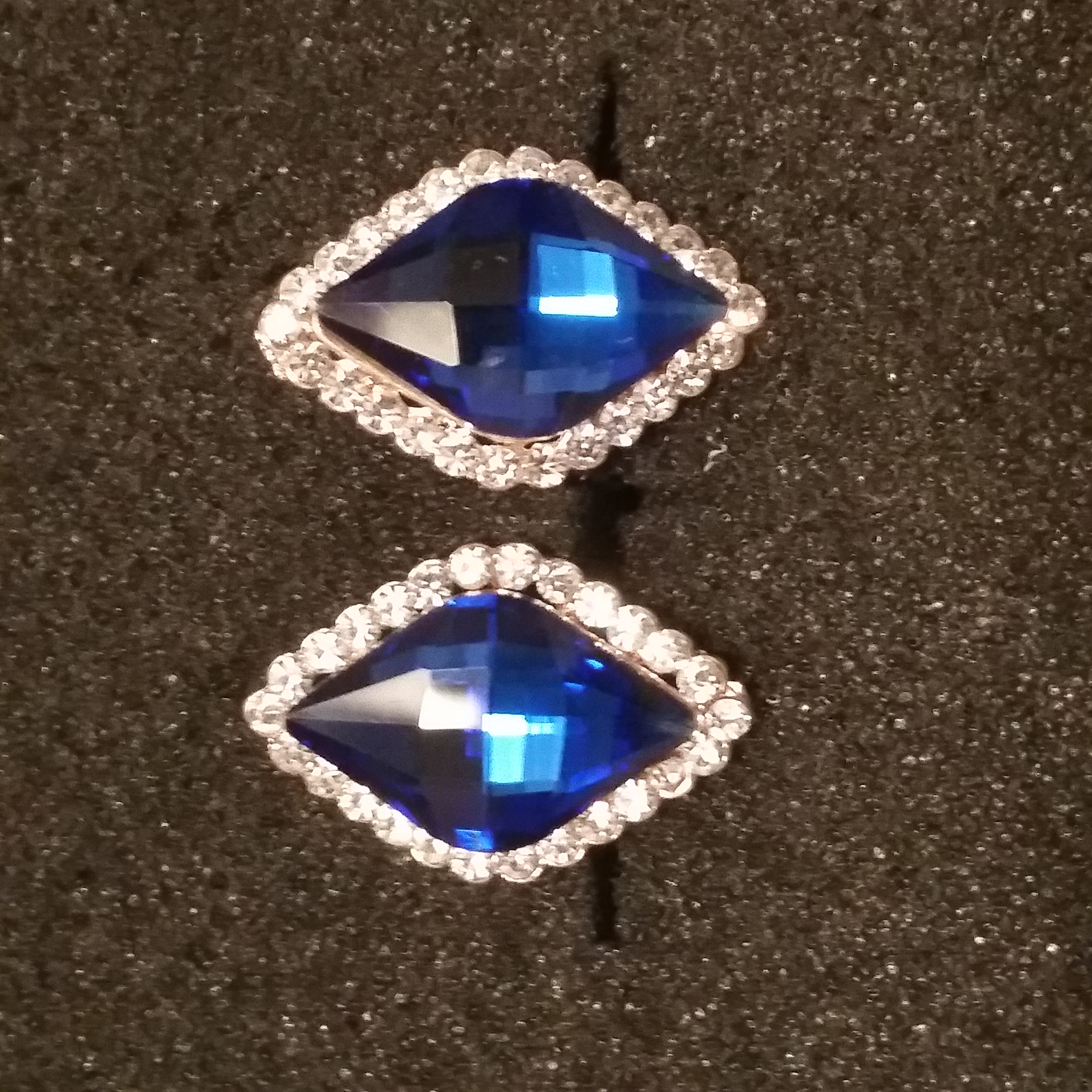 GOLDEN ZINC ALLOY, GEOMETRIC BLUE CRYSTAL, SURROUNDED BY AAA CZ, BUCKLE STUD EARRING