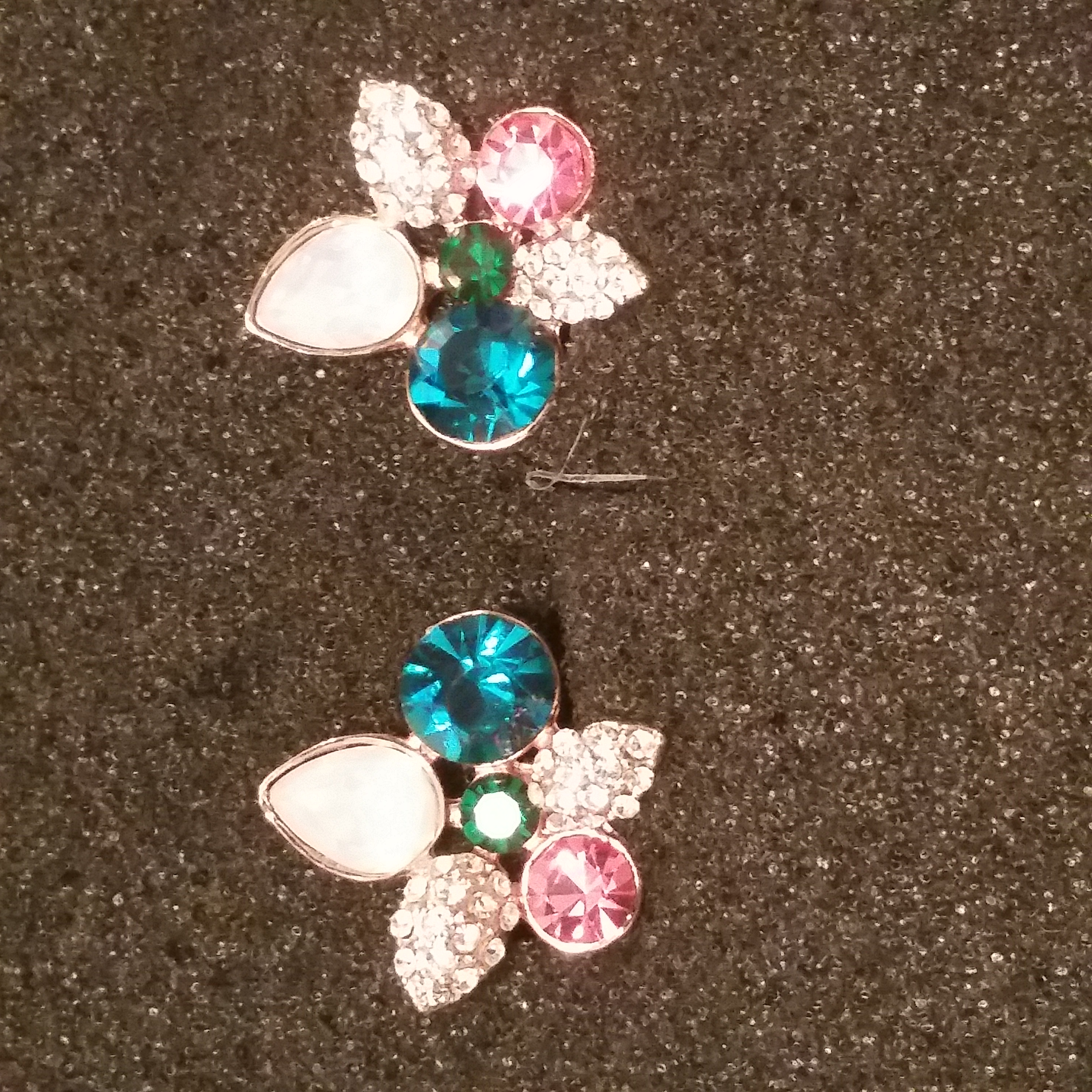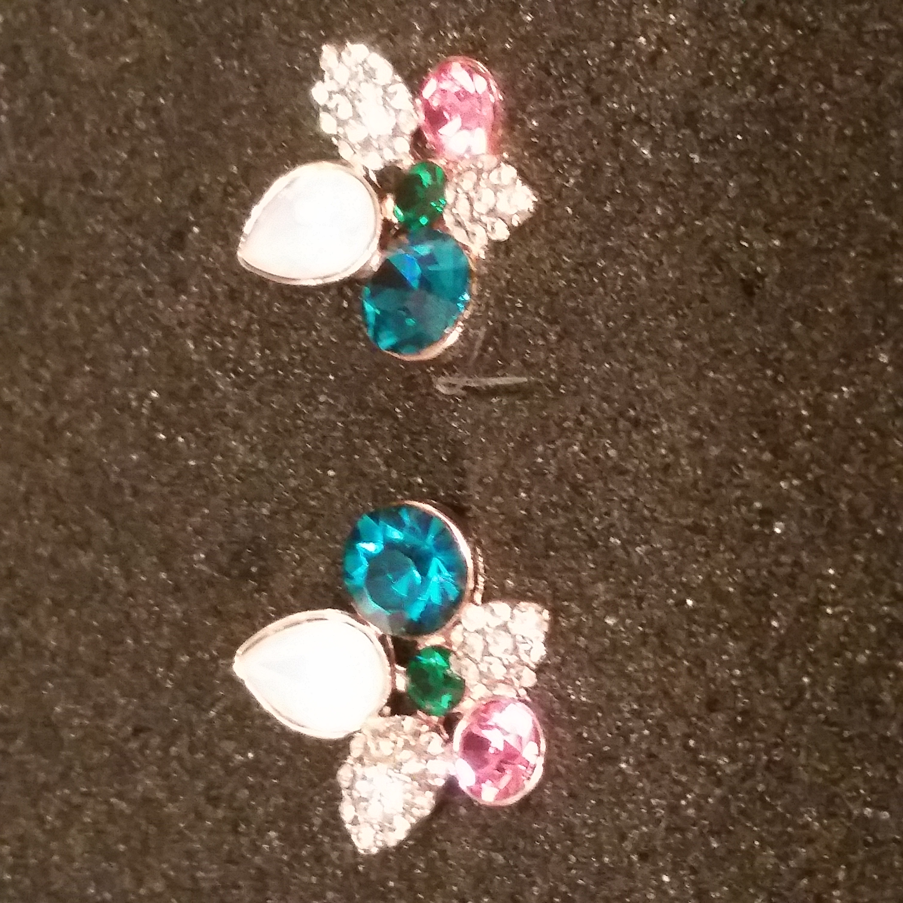 3TIMES 18K ROSE GOLD PLATED MULTI COLORED AUSTRIAN CRYSTAL, BLUE CENTER FLOWER STUD EARRING