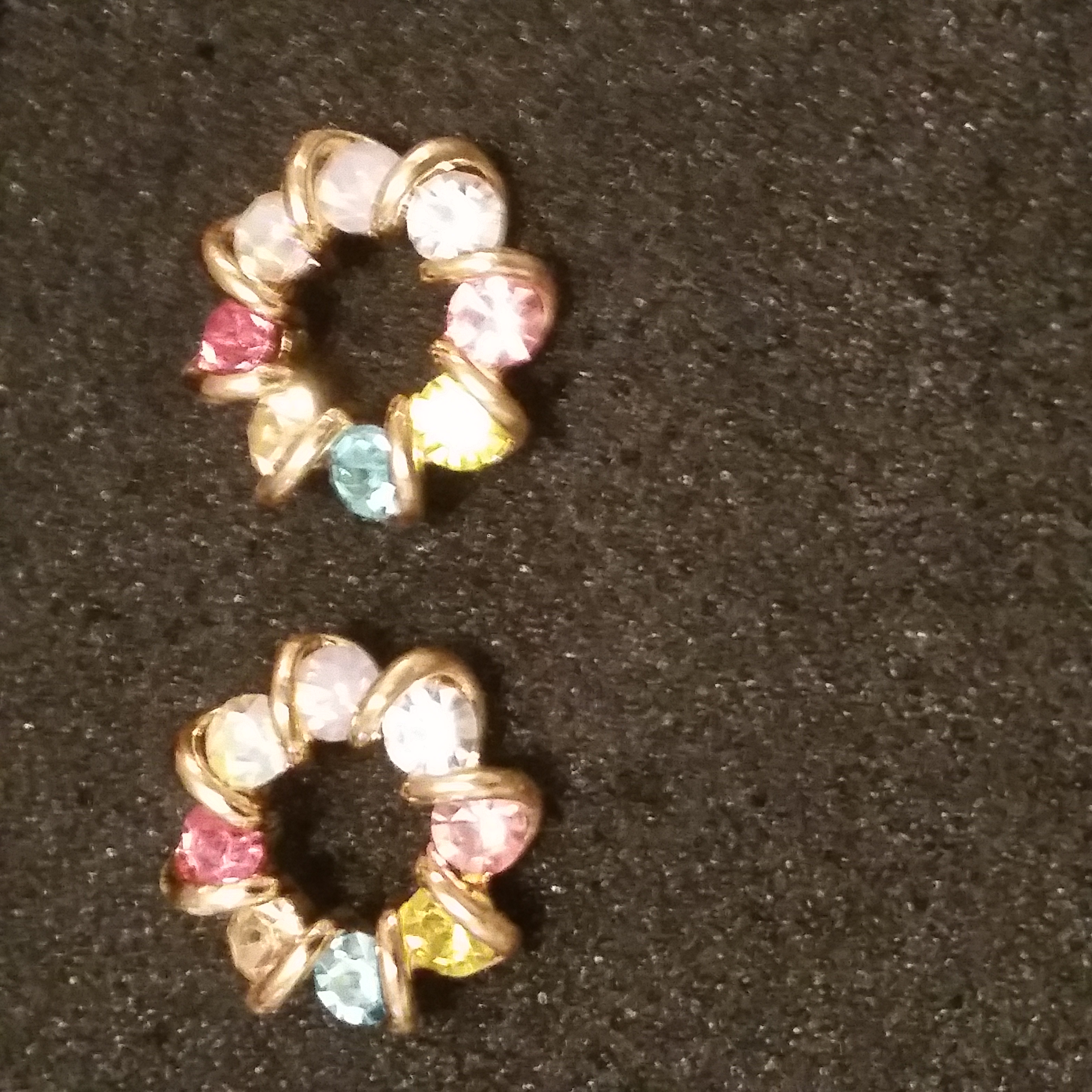 18K 3TIMES GOLD PLATED , MULTI COLRED AUSTRIAN CRYSTAL WREATH STUD EARRING