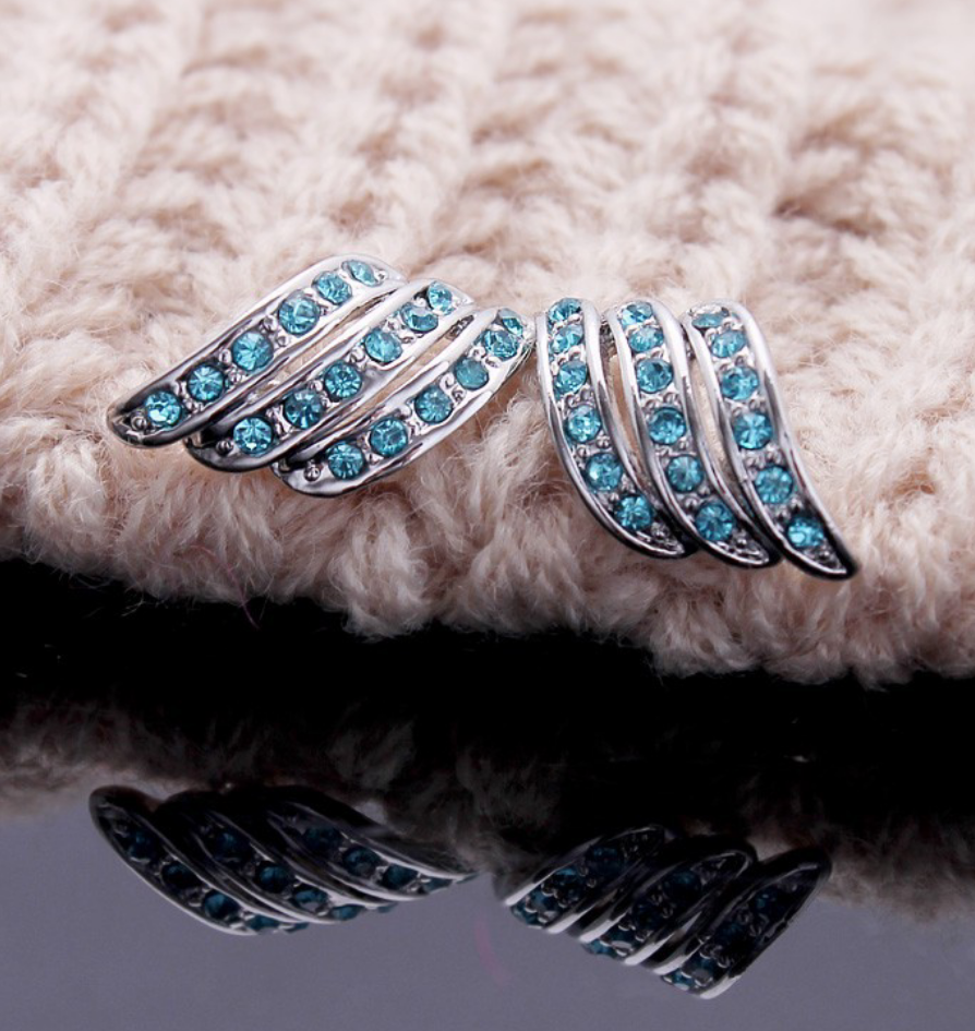 18K WGP SEA BLUE RHNSTN CRYSTAL, BABYS BREATH STUD EARRING