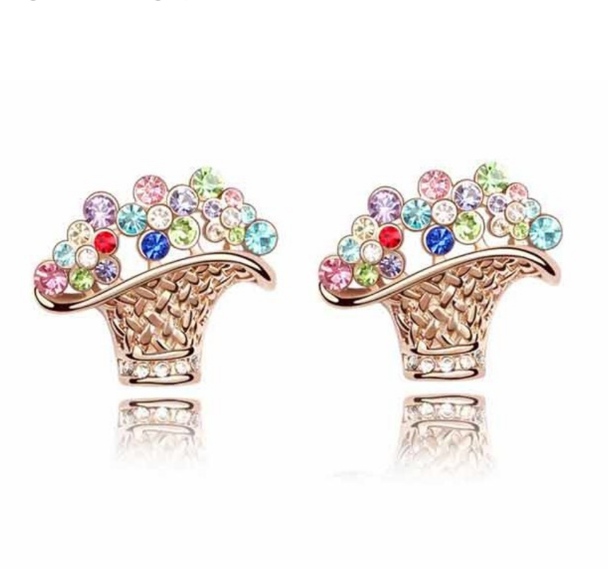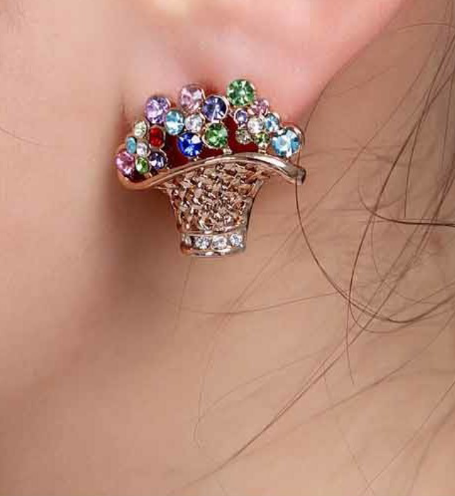 18K GP MULTICOLORED AUSTRIAN CRYSTAL , BASKET STUD EARRING
