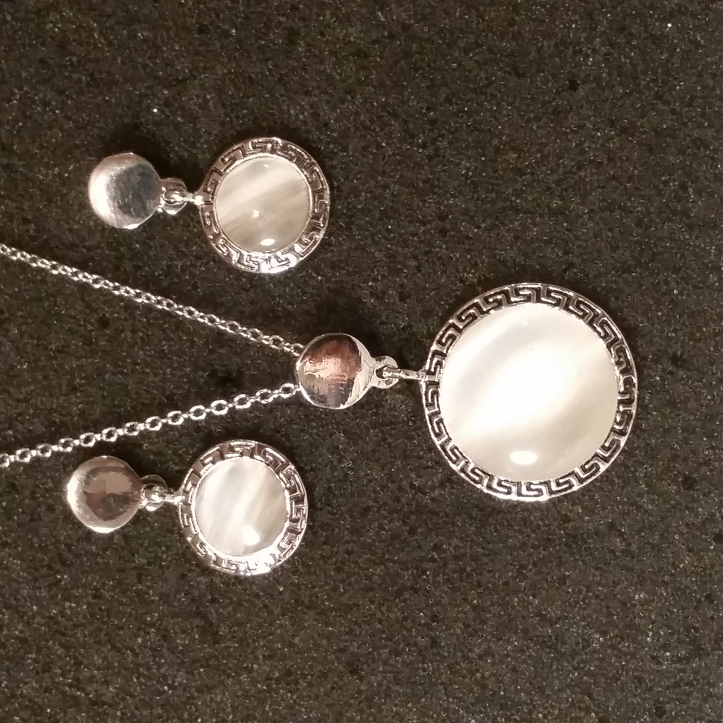 ZINC ALLOY ROUND, OPAL RETRO STYLE, 18"+2", NECKLACE AND POST EARRING
