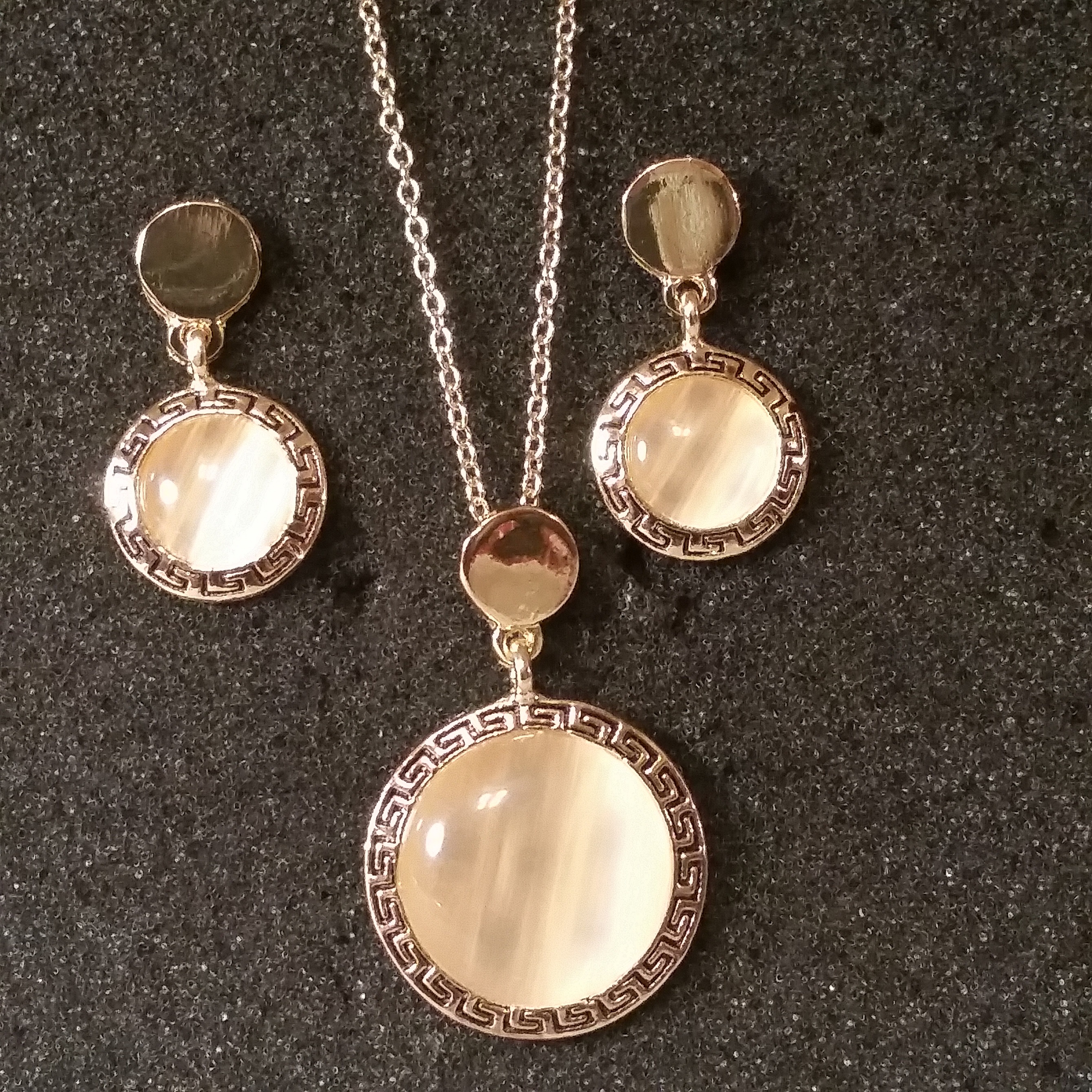 GOLDEN ALLOY, ROUND OPAL RETROSTYLE 18"+2", NECKLACE AND POST EARRING SET