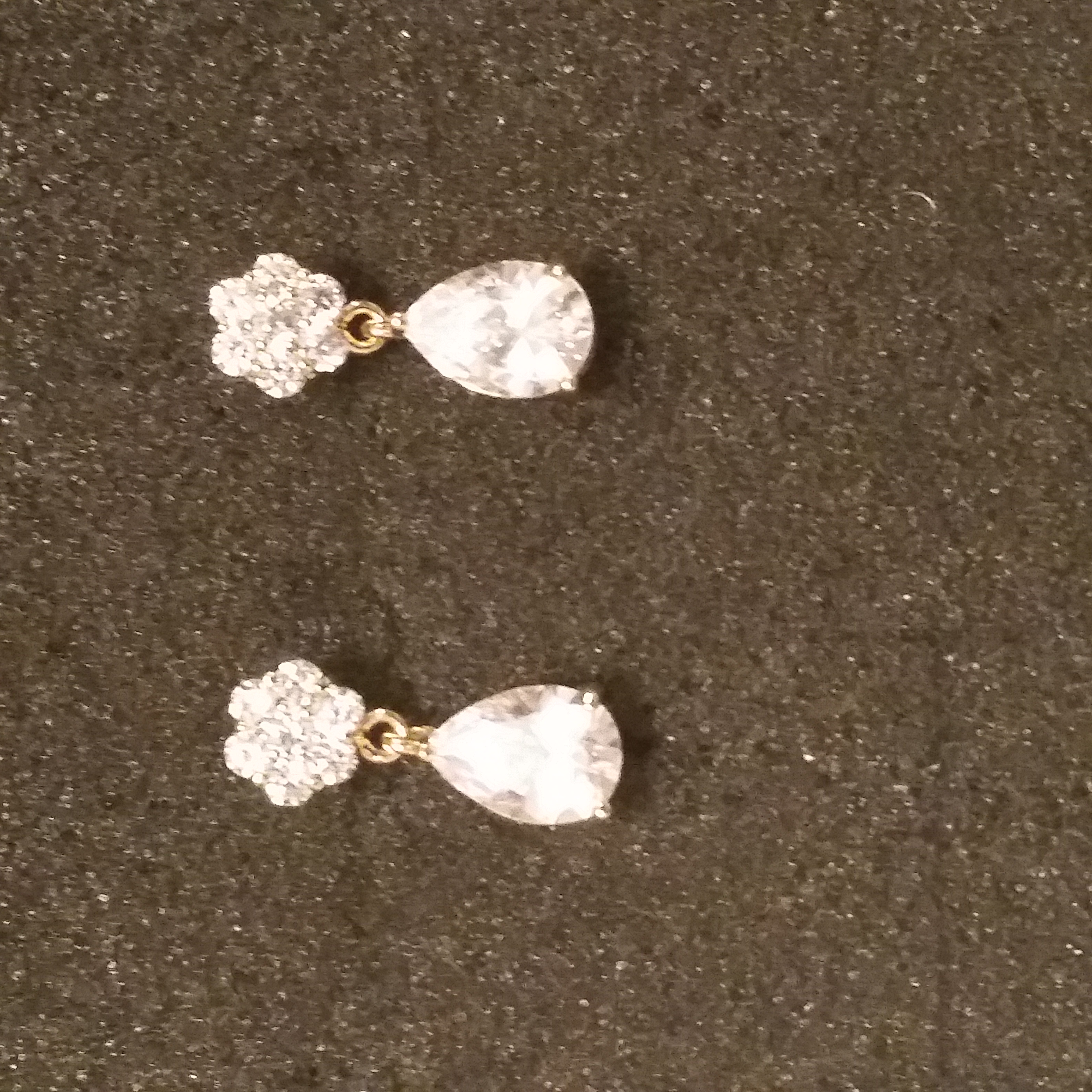 18K GOLD PLATED, TEARDROP CLEAR CUBIC ZIRCONIA, FLOWER POST EARRING