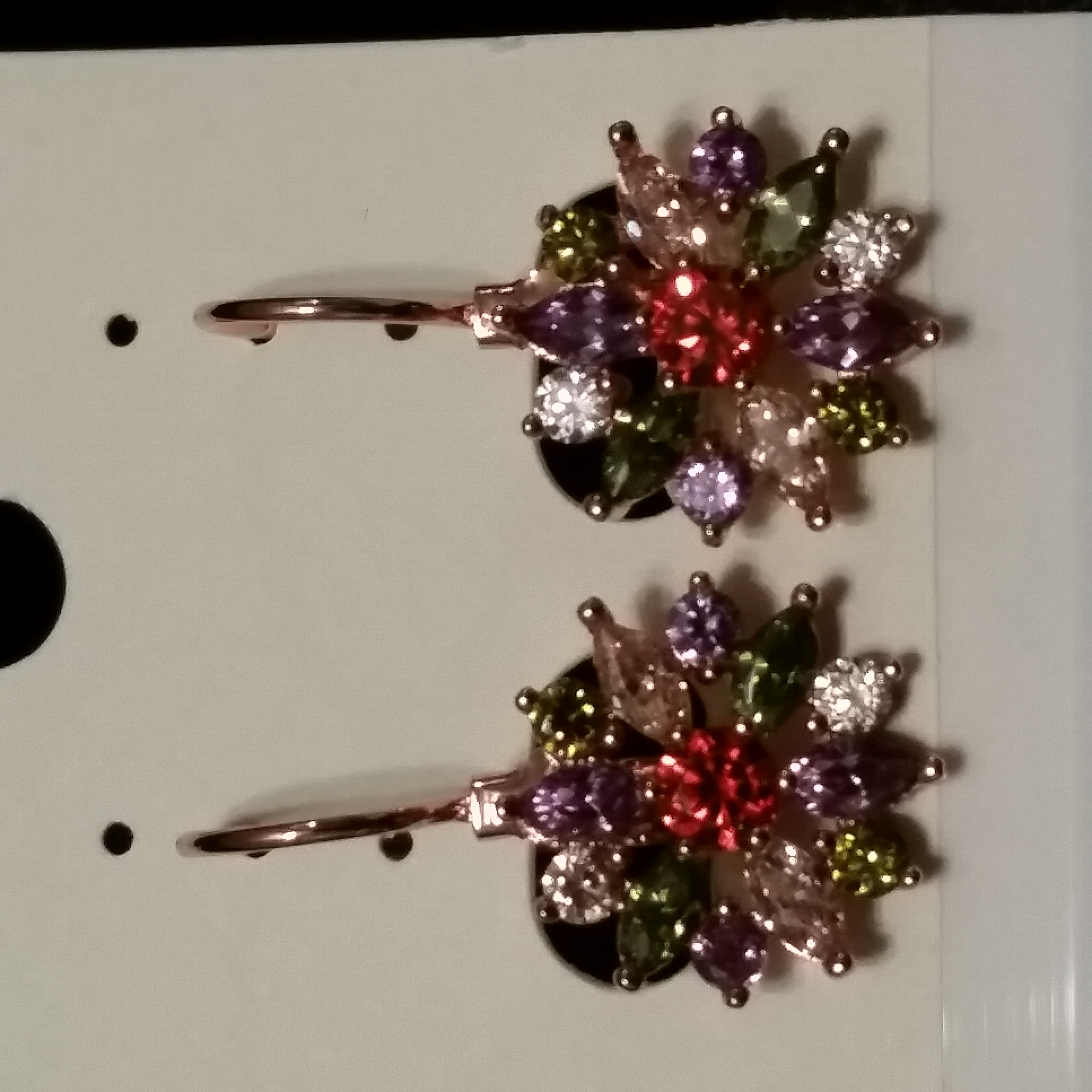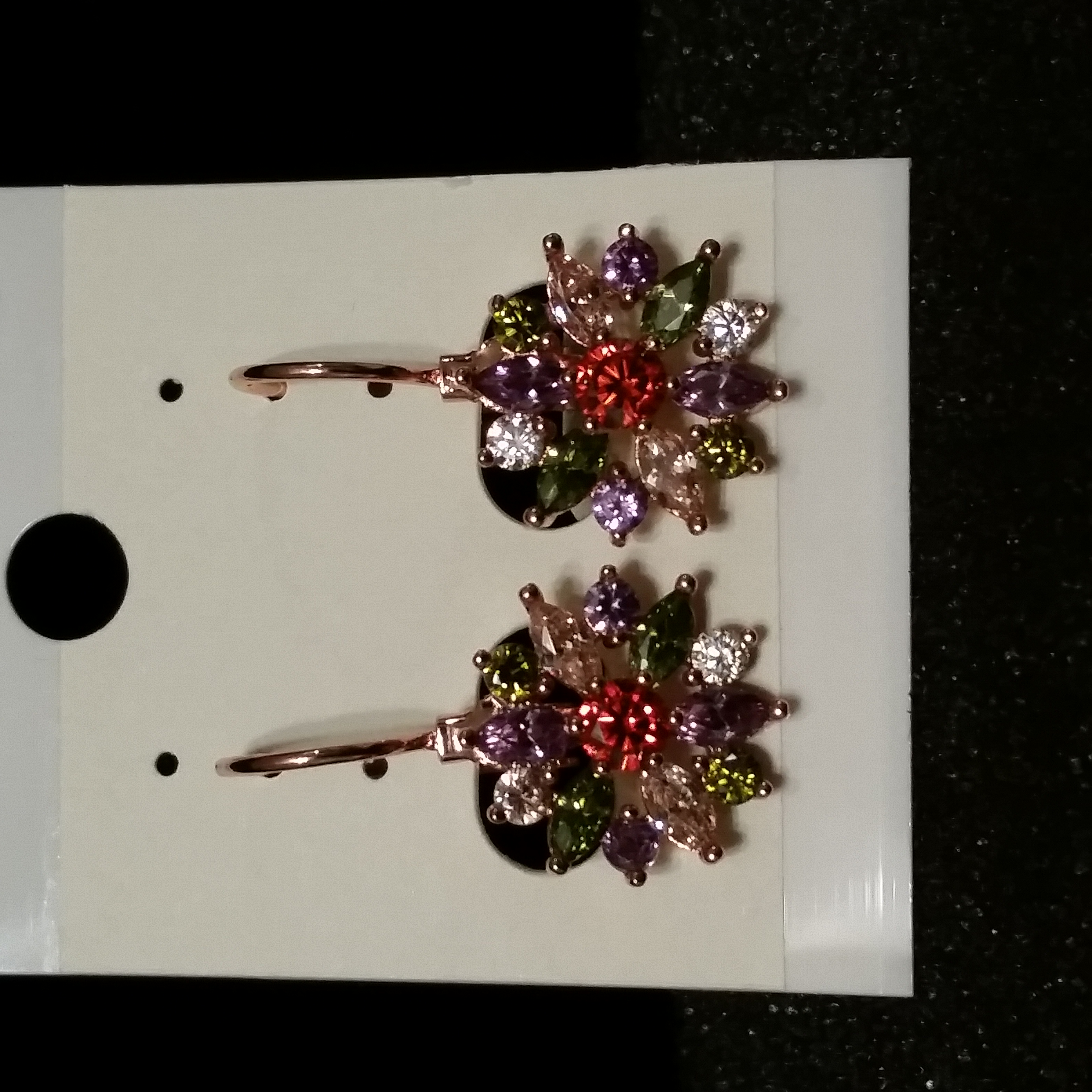 18K GP MULTI-COLORED AAA ZIRCON FLOWER LEVER BACK EARRING