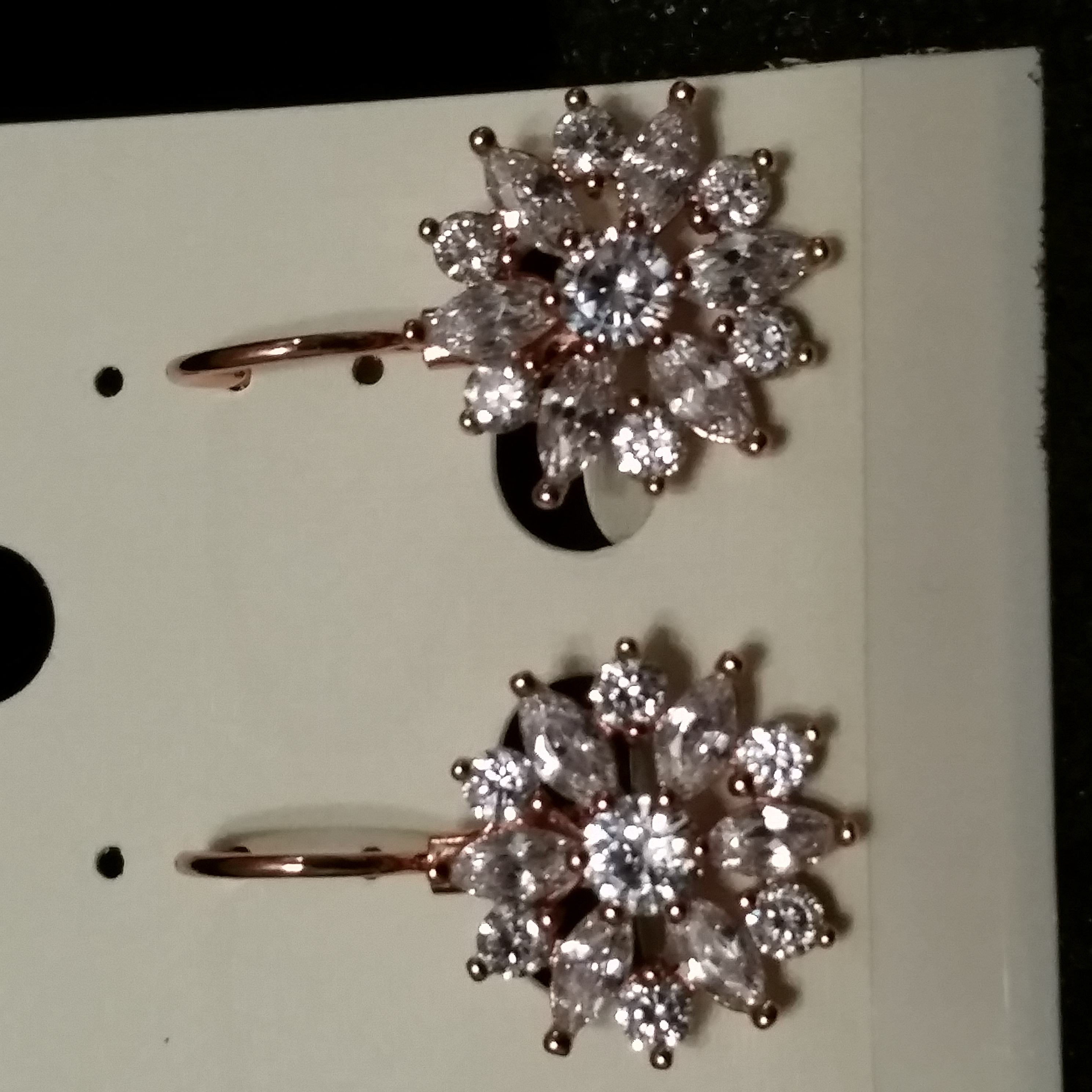 18K GP HIGH QUALITY CLEAR ZIRCON FLOWER LEVER BACK EARRING
