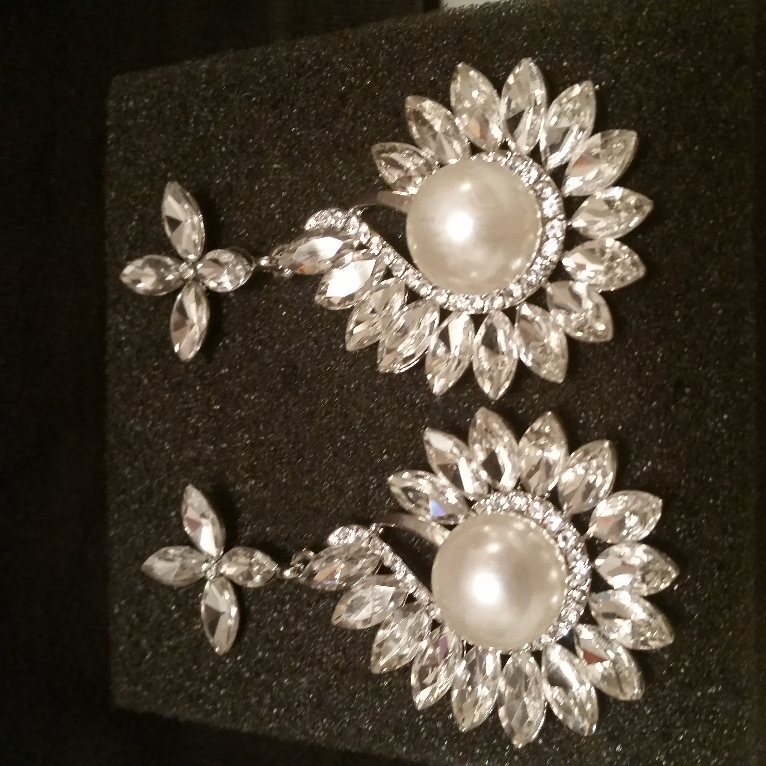 ZINC ALLOY, CLEAR TEAR DROP CRYSTAL WITH A CLEAR RHNSTNS IN A FLOWER POST EARRING