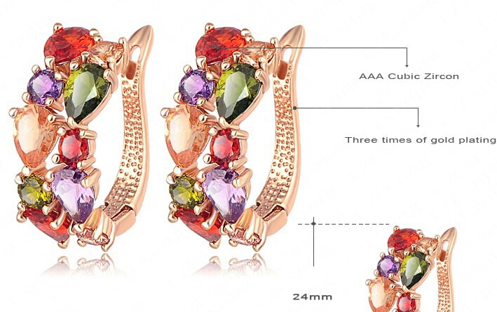 3TIMES 18K ROSE GOLD PLATED, MULTI COLORED AAA SWISS CUBIC ZIRCONIA,
