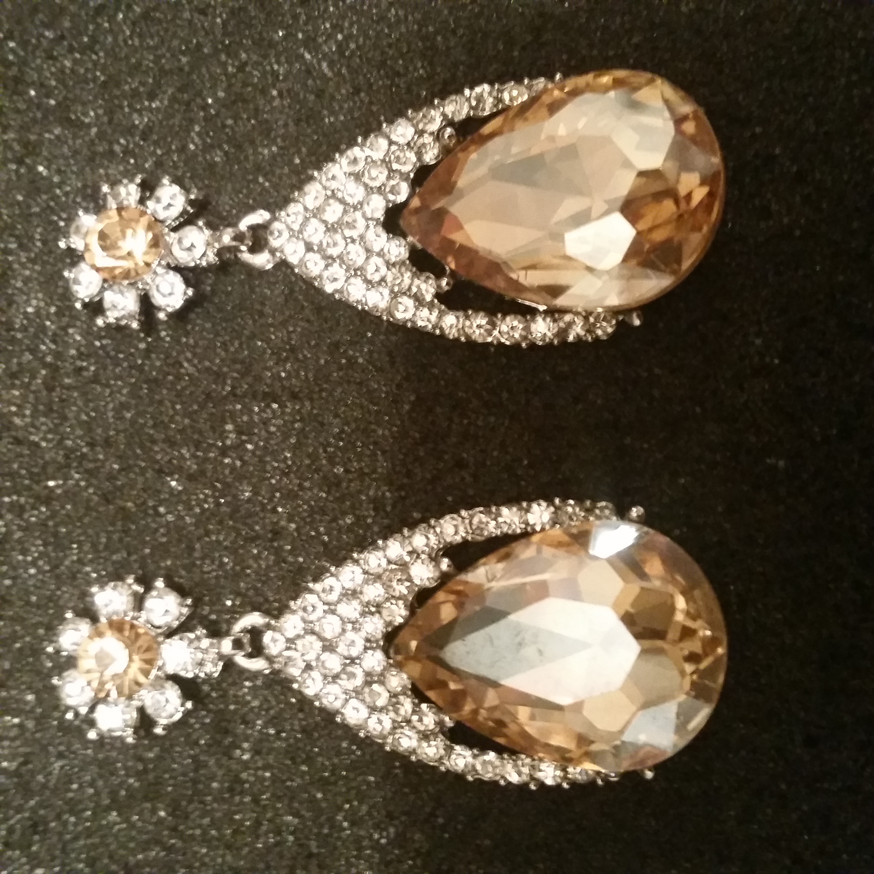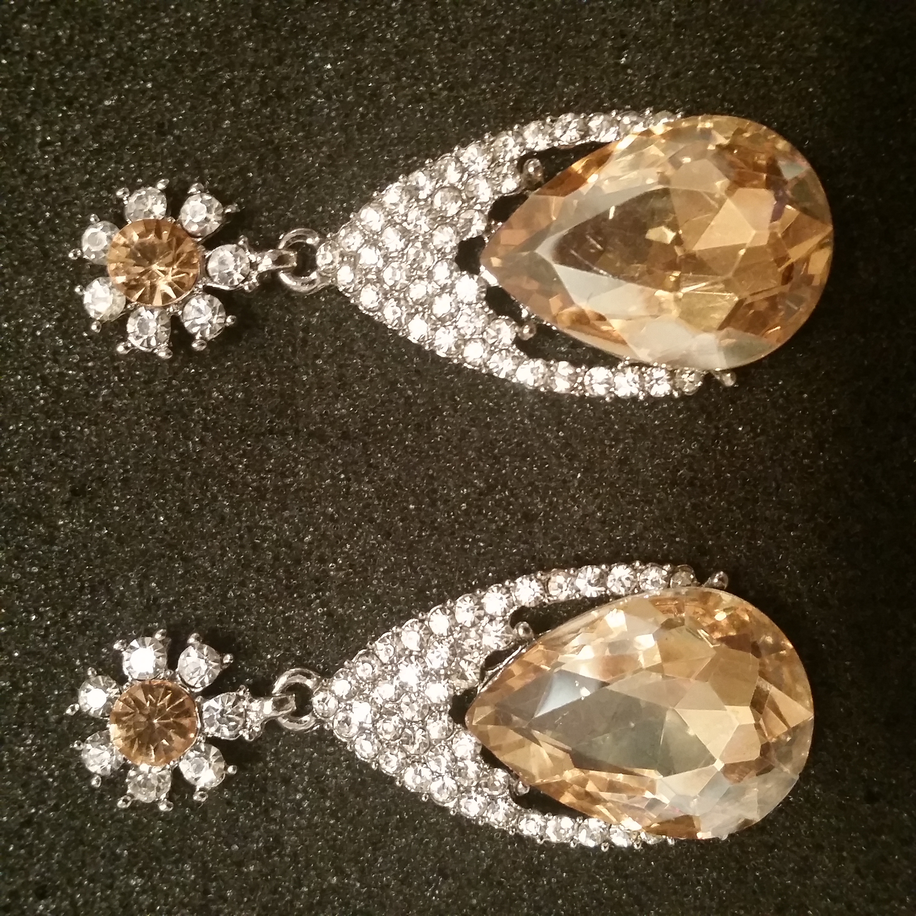 SILVERISH ZINC ALLOY , AAACHAMPAGNE CRYSTAL, CLR RHNSTNS TEARDROP POST EARRING