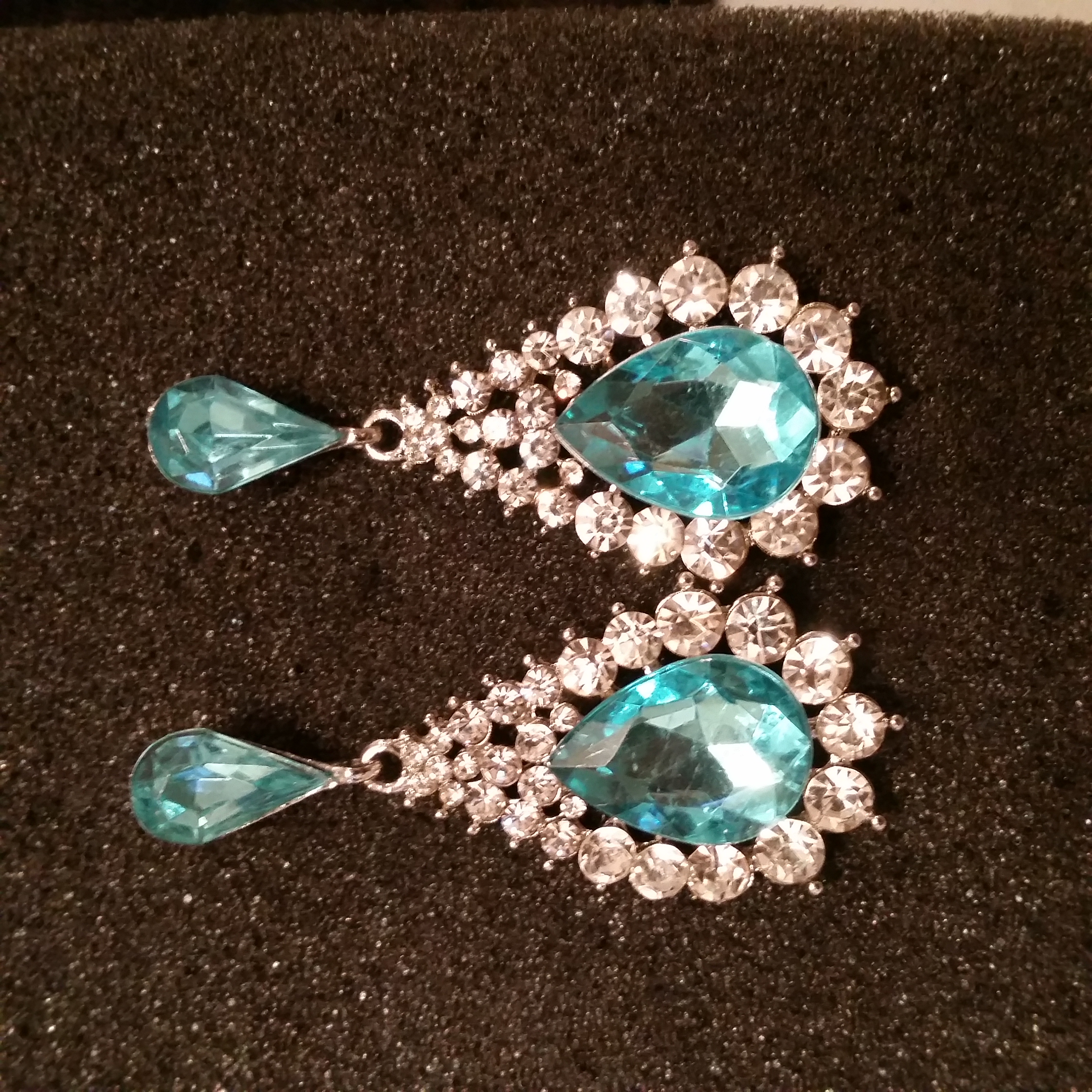 SILVERISH ZINC ALLOY, ACRYLIC BLUE TEARDROP STONE AND CLR RHNSTN IN A POST EARRING