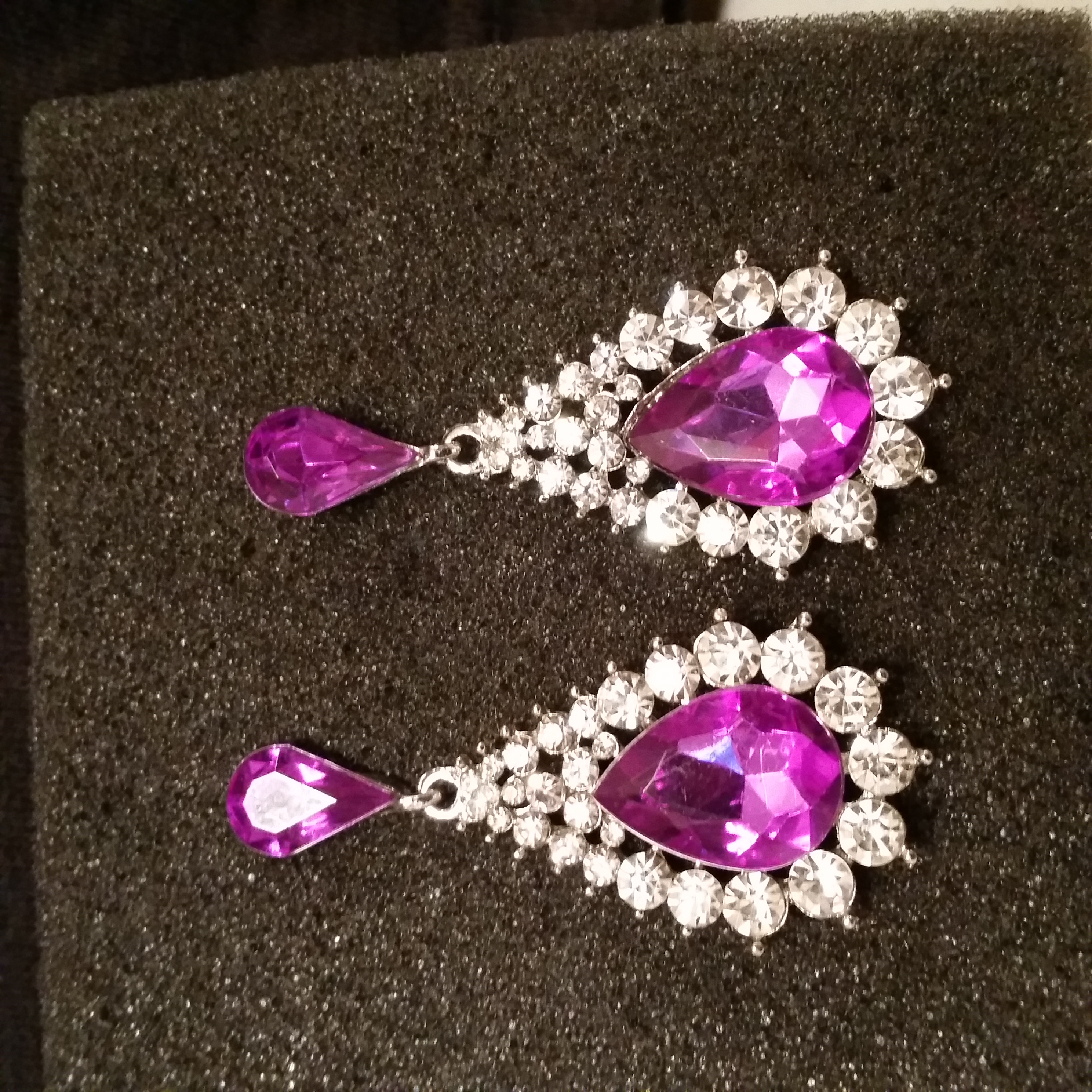 SILVERISH ZINC ALLOY, ACRYLIC PURPLE TEARDROP STONE AND CLR RHNSTN IN A POST EARRING