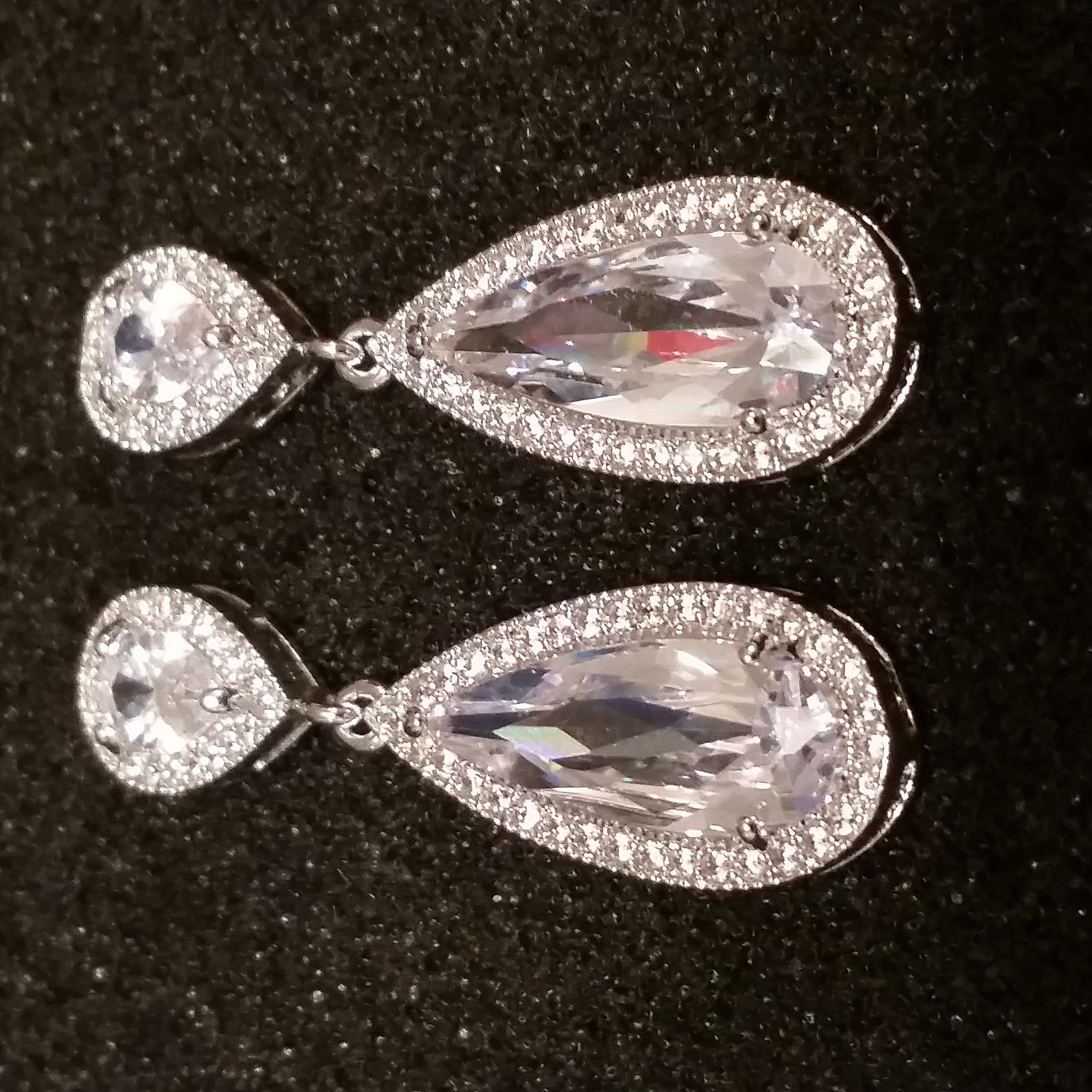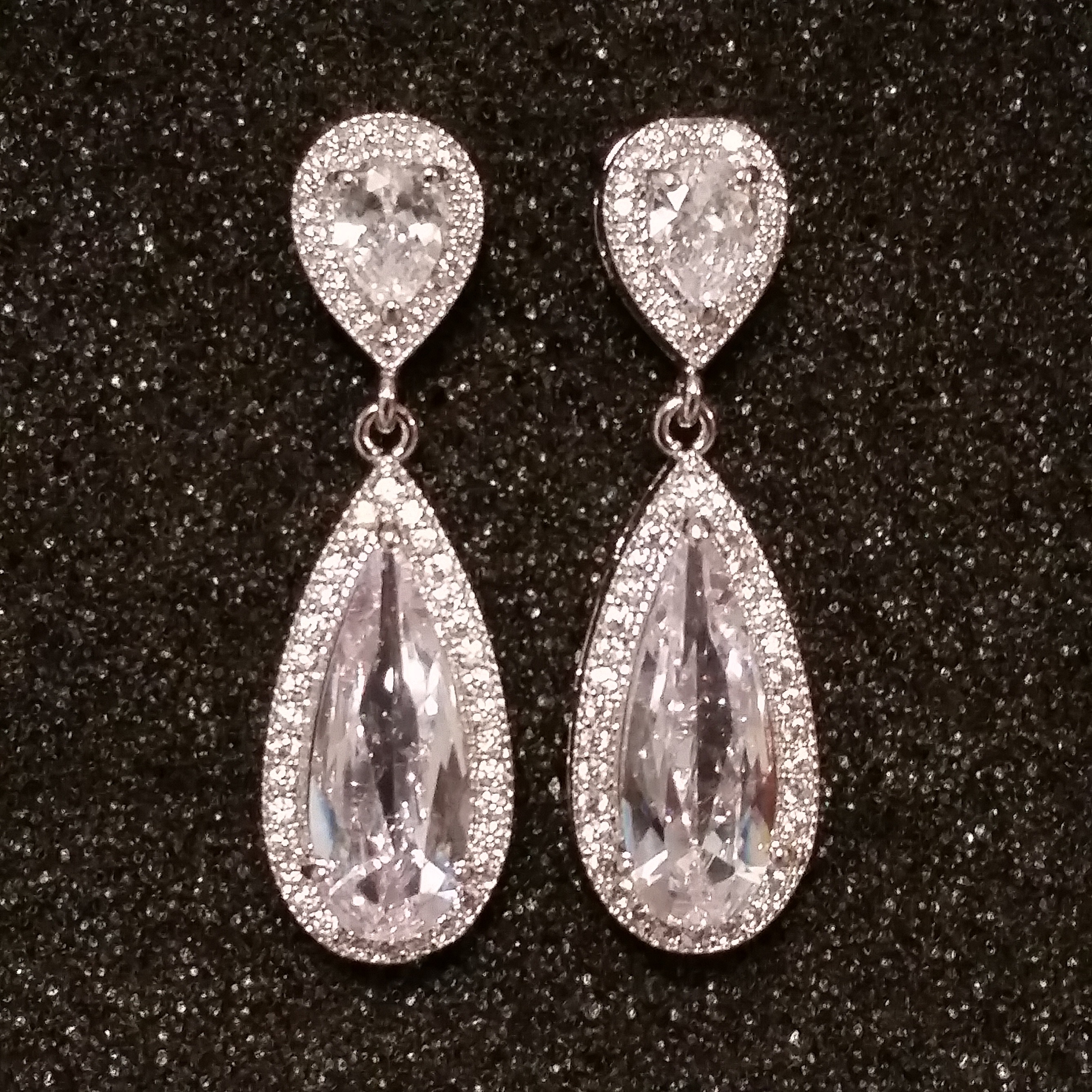 PLATINUM PLATED WHITE WATERDROP AAA CZ AND CLEAR RHNSTN POST EARRINGS