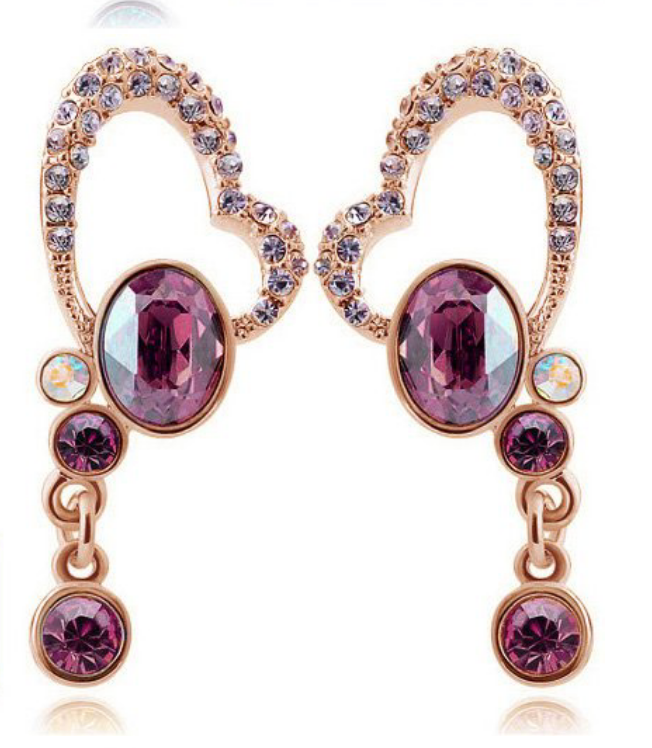 18K GP, GRAPE CRYSTAL, CLR RHNSTNS HEARTS DROP EARRING