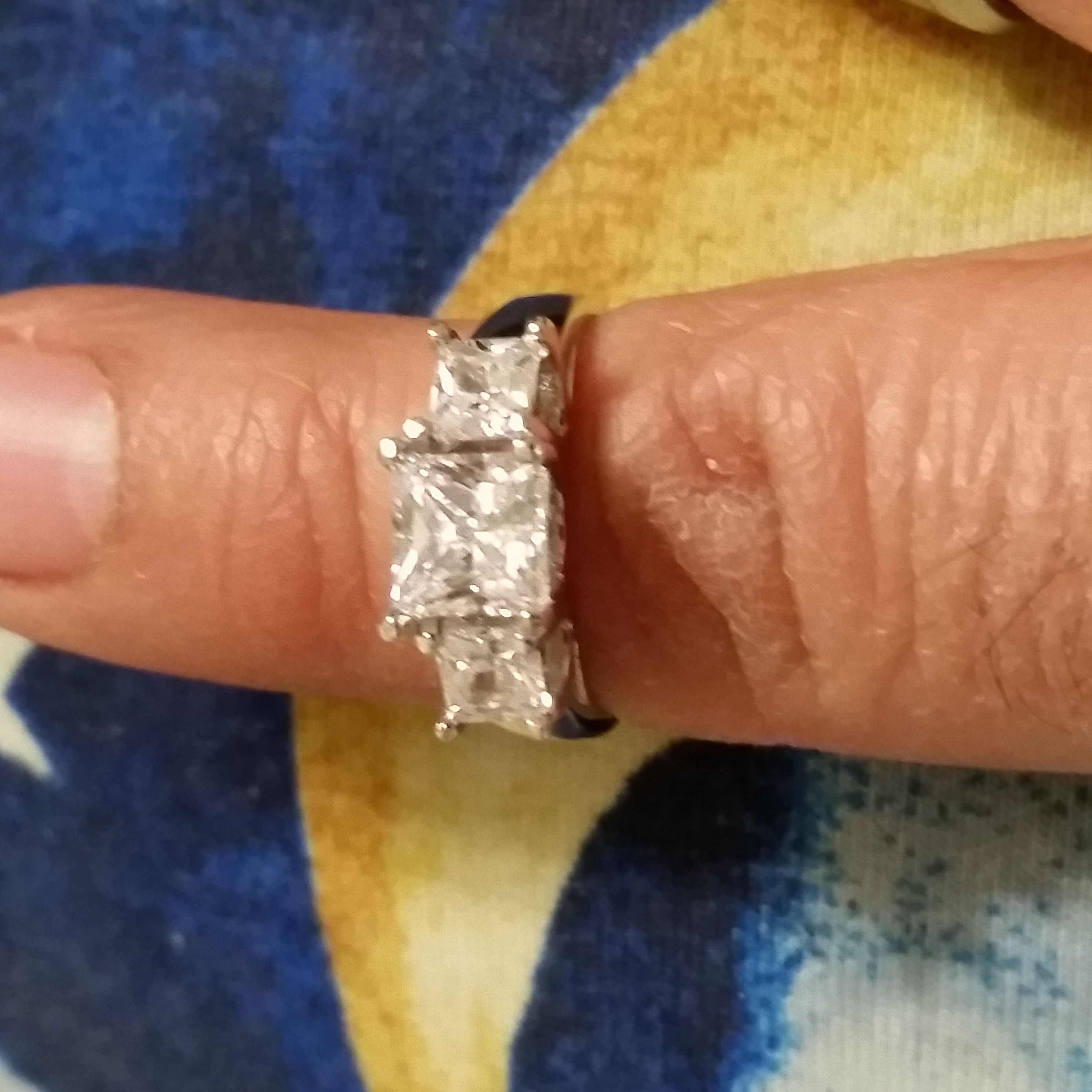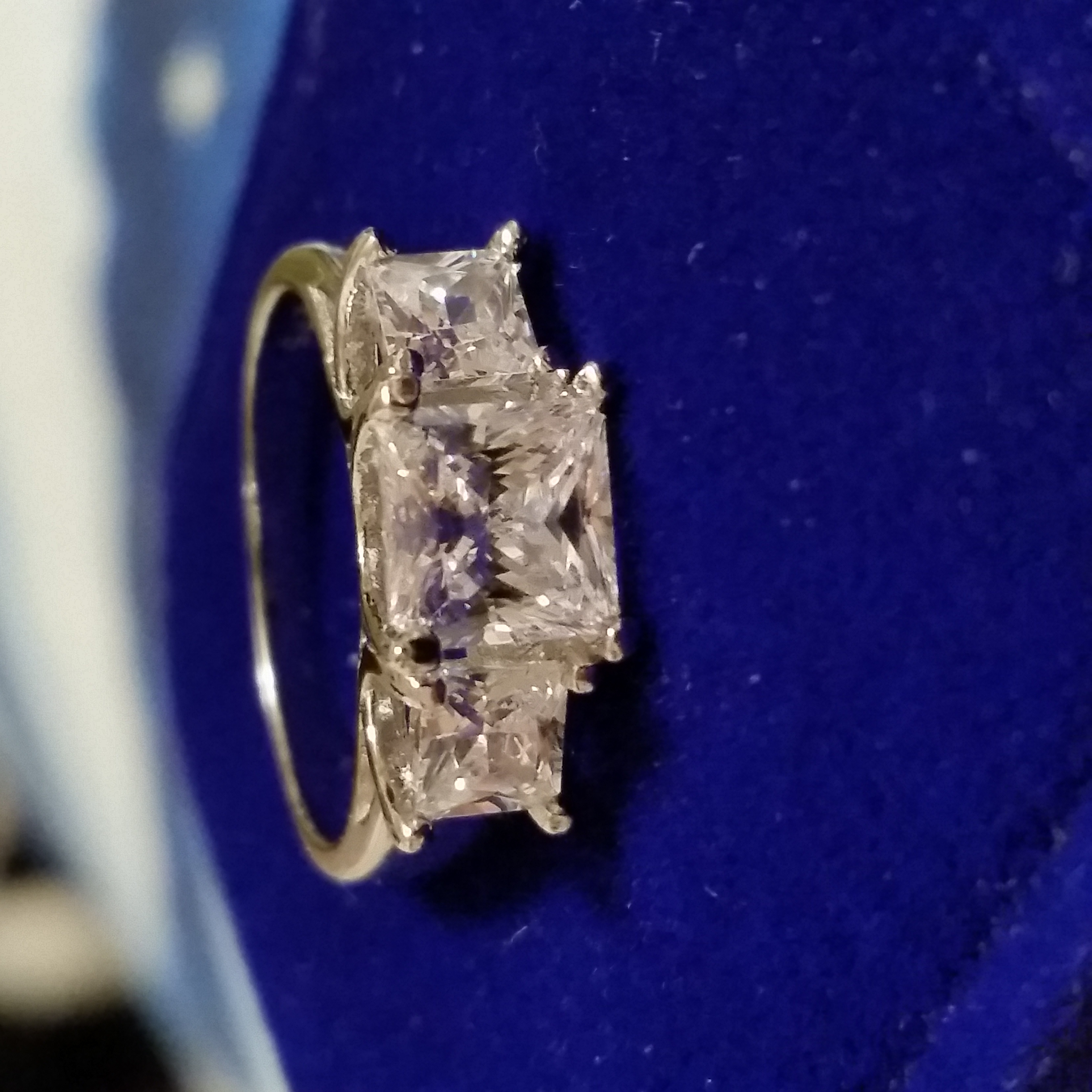 STERLING SILVER 925, RHODIUM PLATED, 1CT PRINCESS CUT LAB CREATED DIAMOND CENTERSTONE W/ .5CTW SIDE STONES SIZE 6
