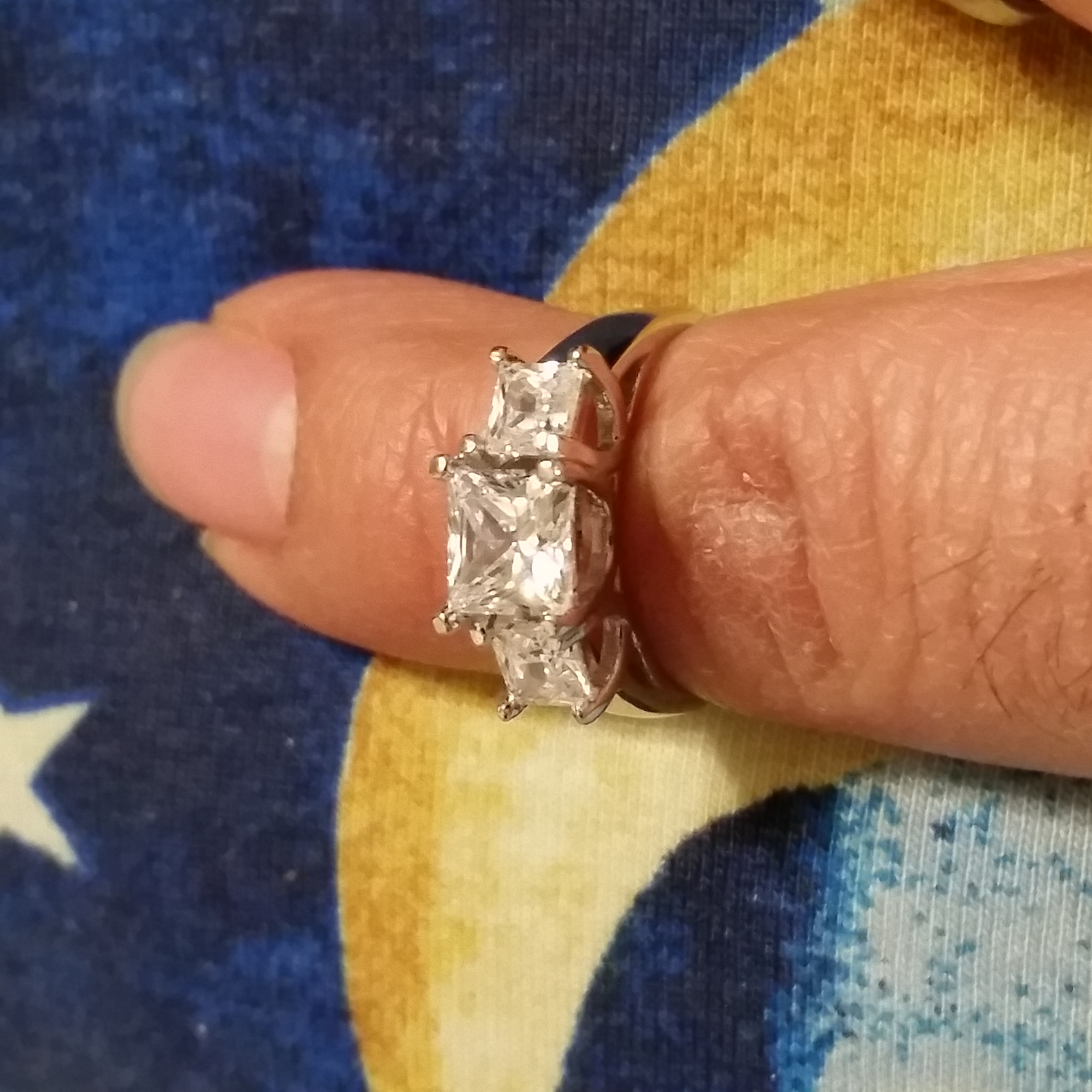 STERLING SILVER 925, RHODIUM PLATED, 1CT PRINCESS CUT LAB CREATED DIAMOND CENTERSTONE W/ .5CTW SIDE STONES SIZE 7