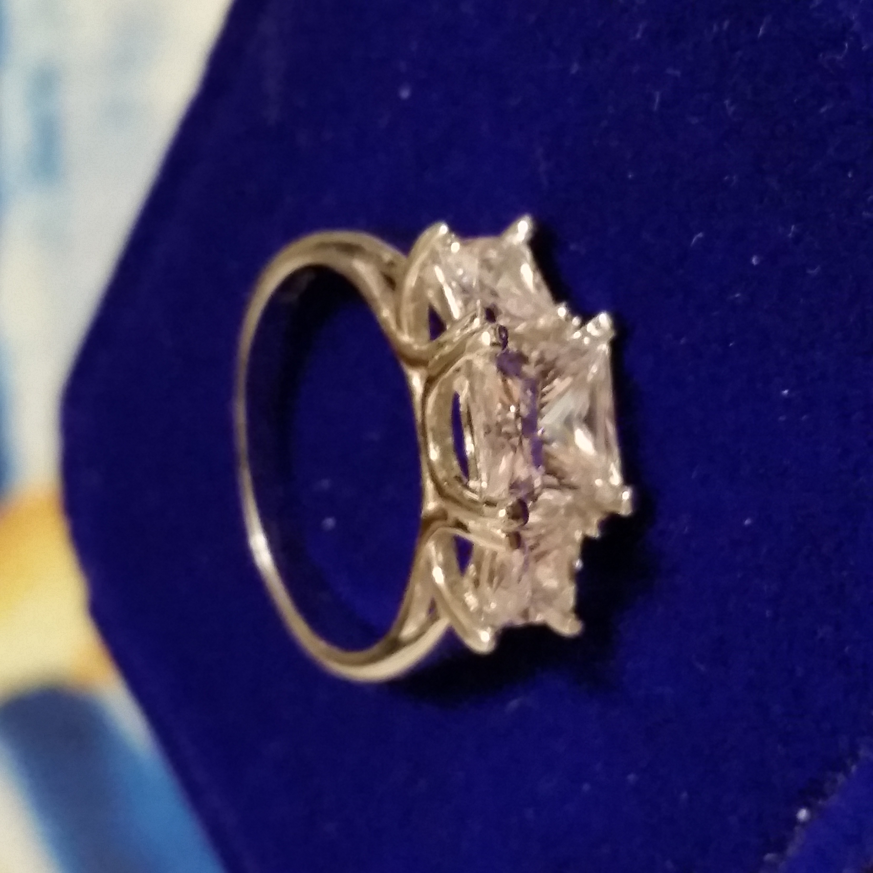 STERLING SILVER 925, RHODIUM PLATED, 1CT PRINCESS CUT LAB CREATED DIAMOND CENTERSTONE W/ .5CTW SIDE STONES SIZE 8