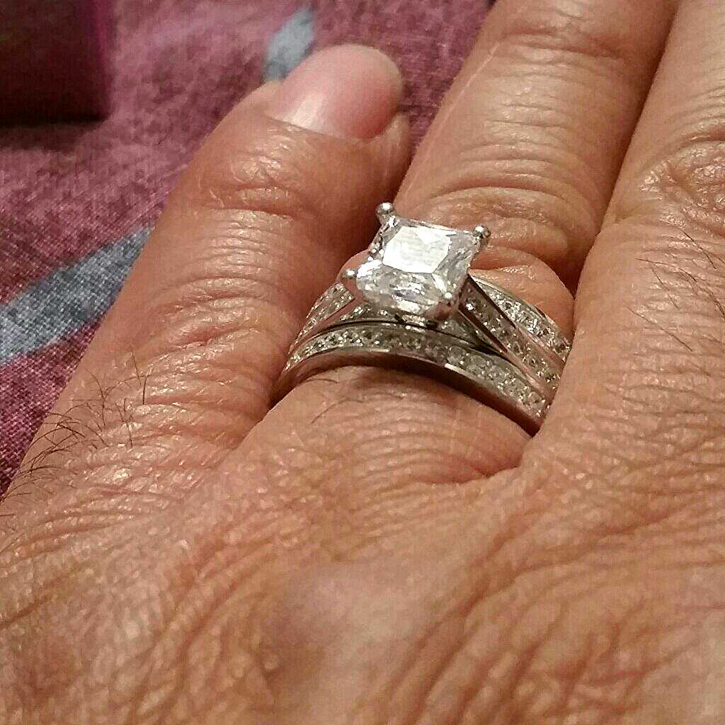 3 PC, STERLING SILVER 925, RHODIUM PLATED, 1.5CT PRINCESS CUT LAB CREATED DIAMOND, SIZE 11