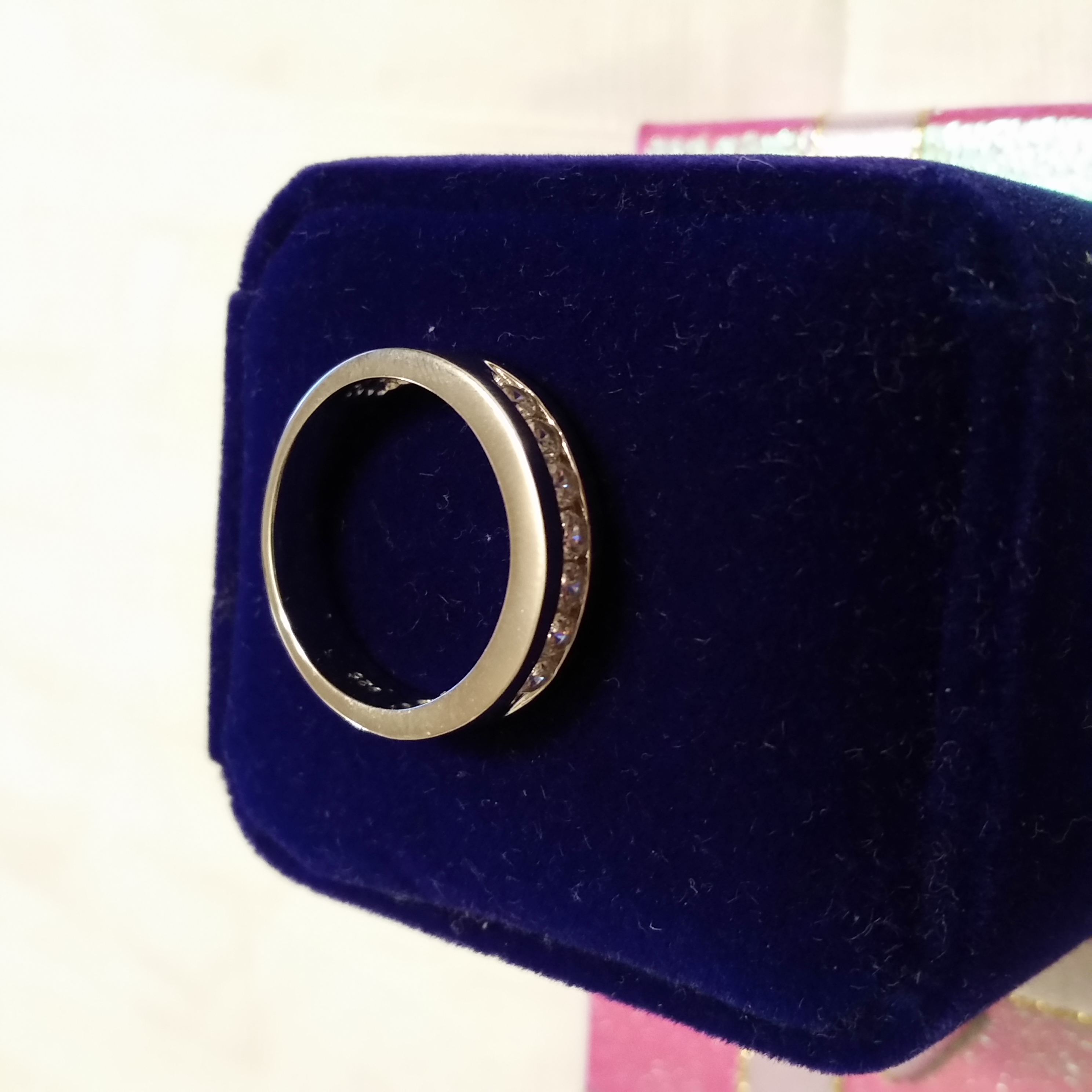 STERLING SILVER 925, RHODIUM PLATED, MENS WEDDING BAND W/ LAB CREATED DIAMOND ACCENTS SIZE11
