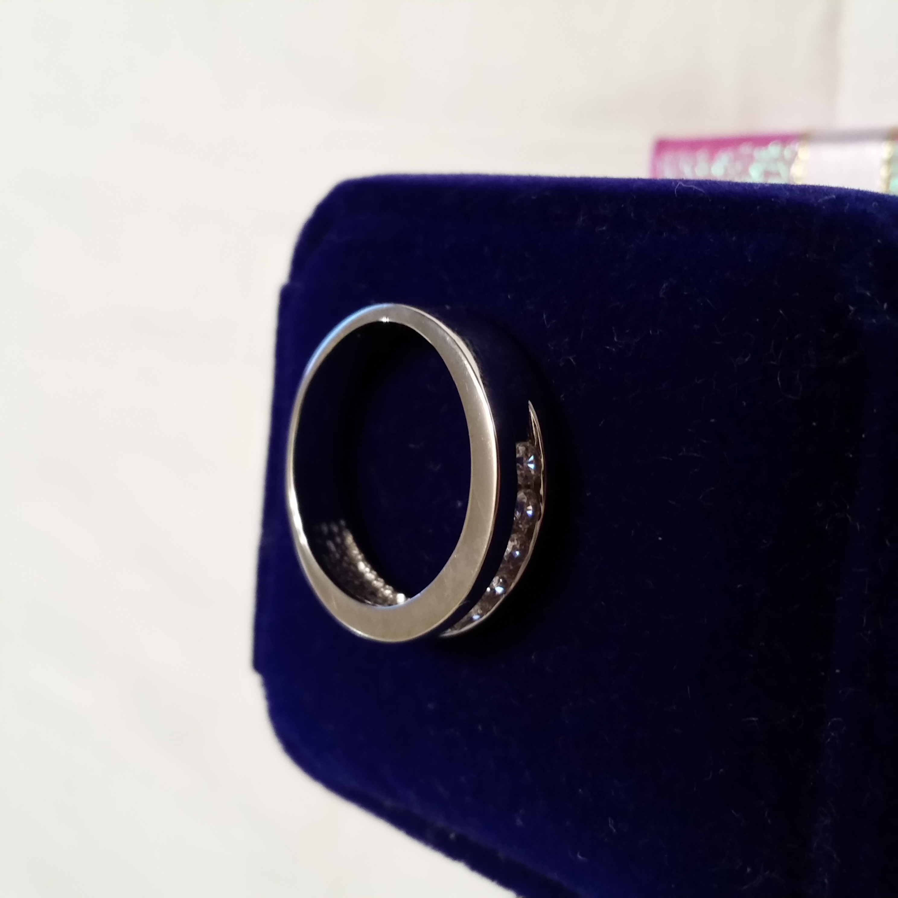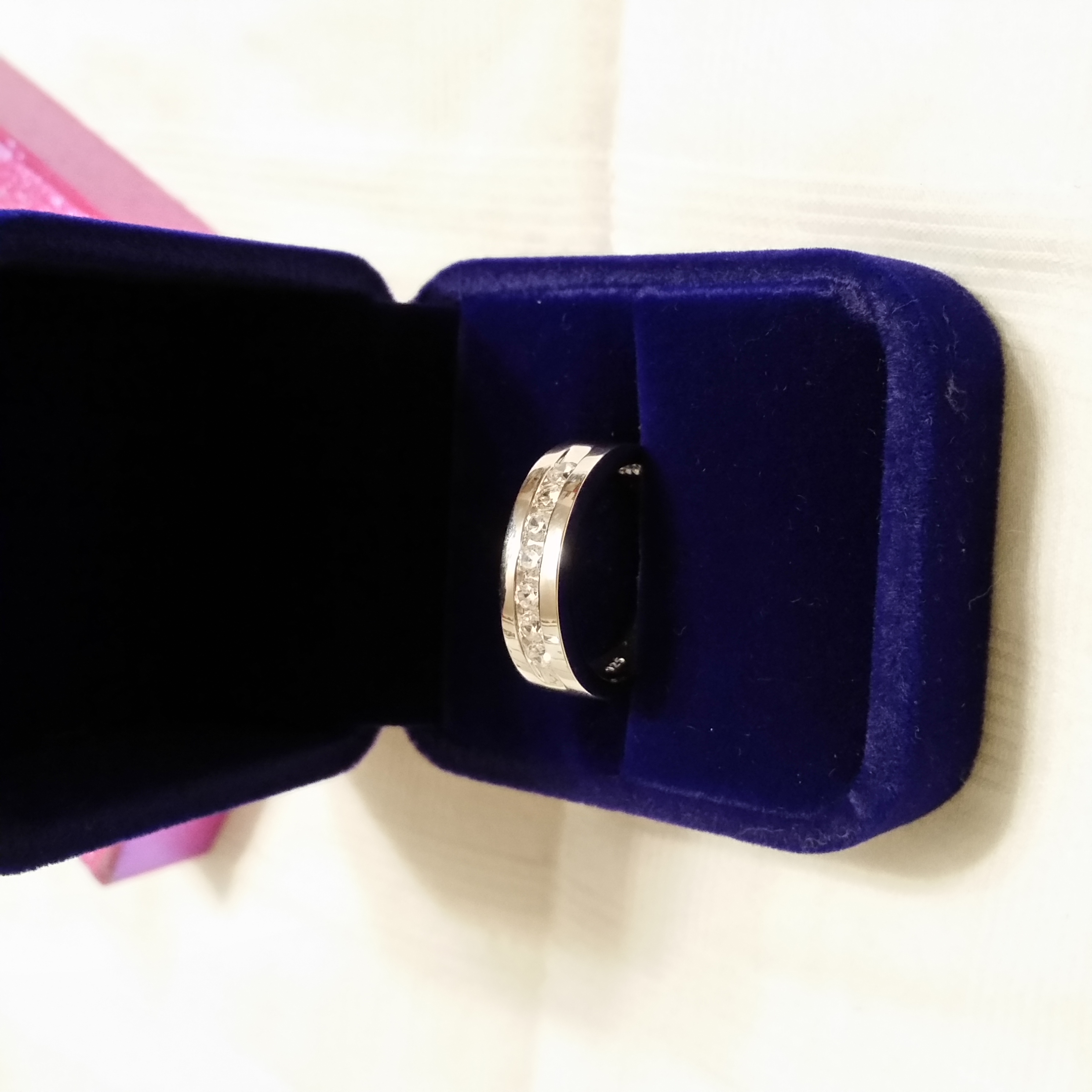 STERLING SILVER 925, RHODIUM PLATED, MENS WEDDING BAND W/ LAB CREATED DIAMOND ACCENTS SIZE 10
