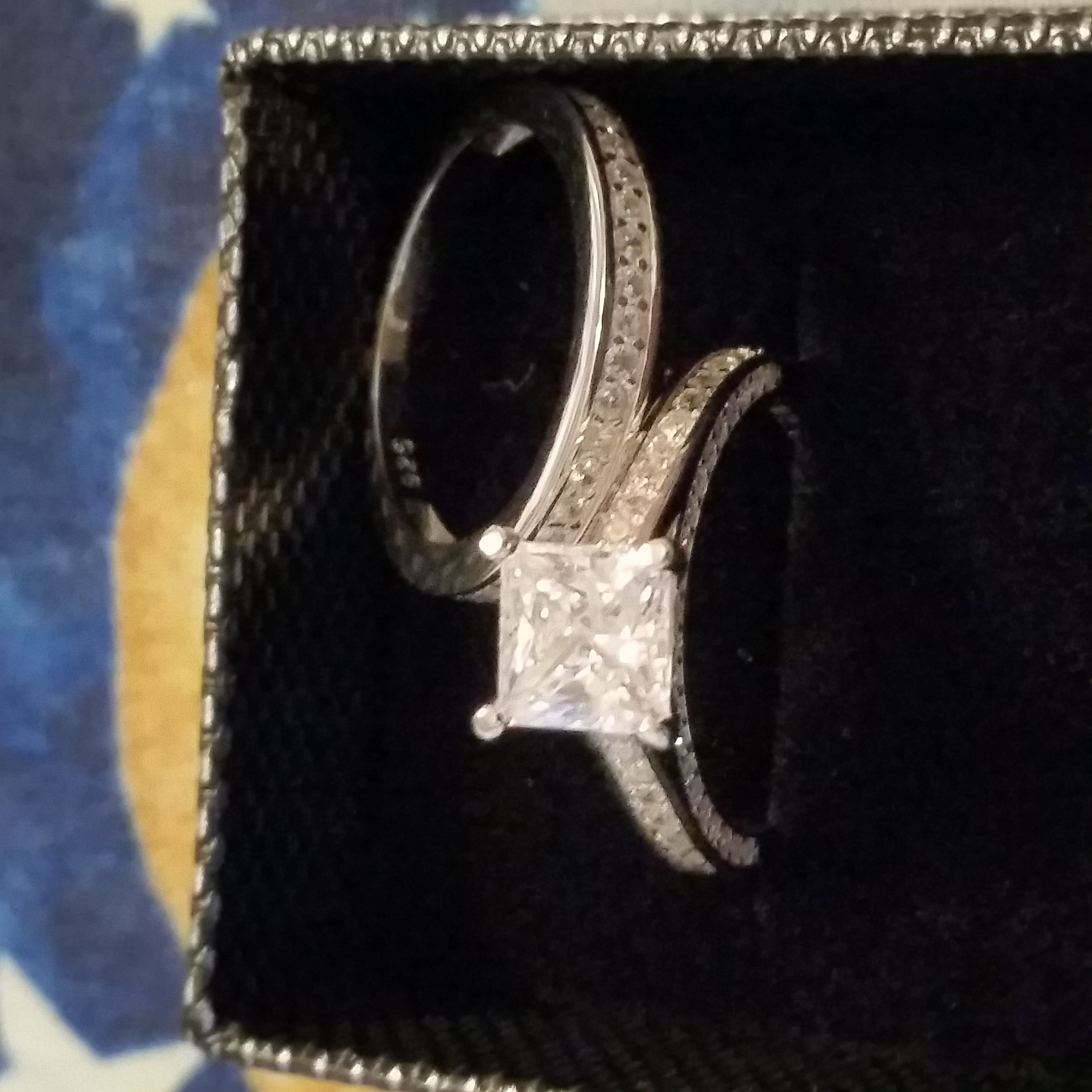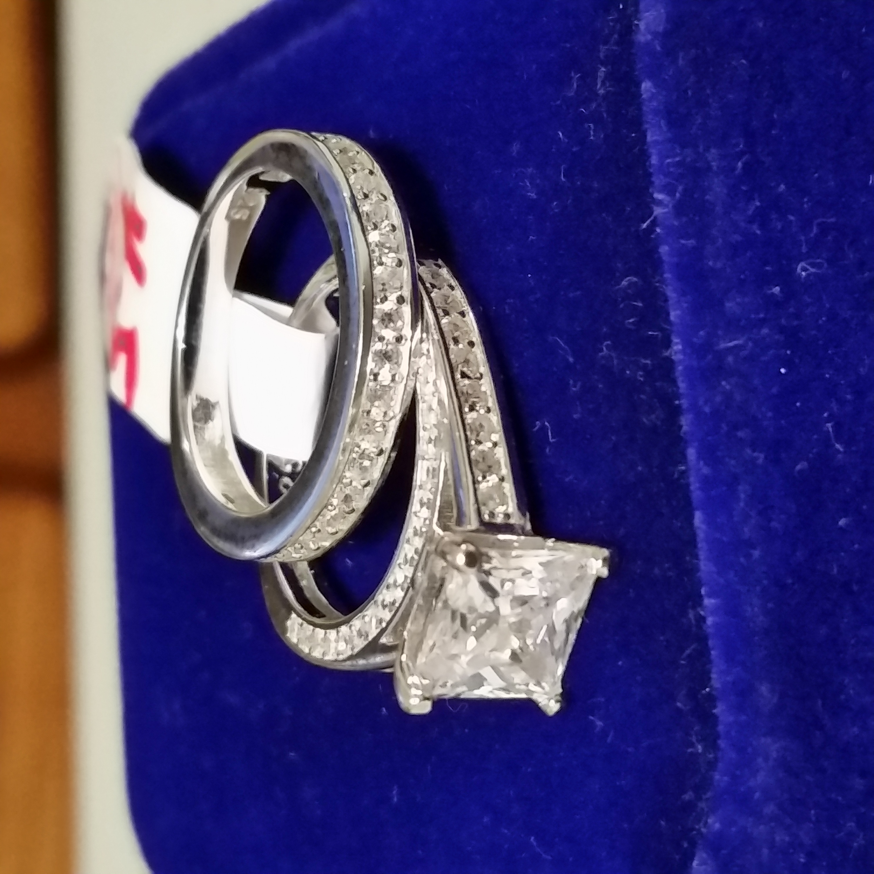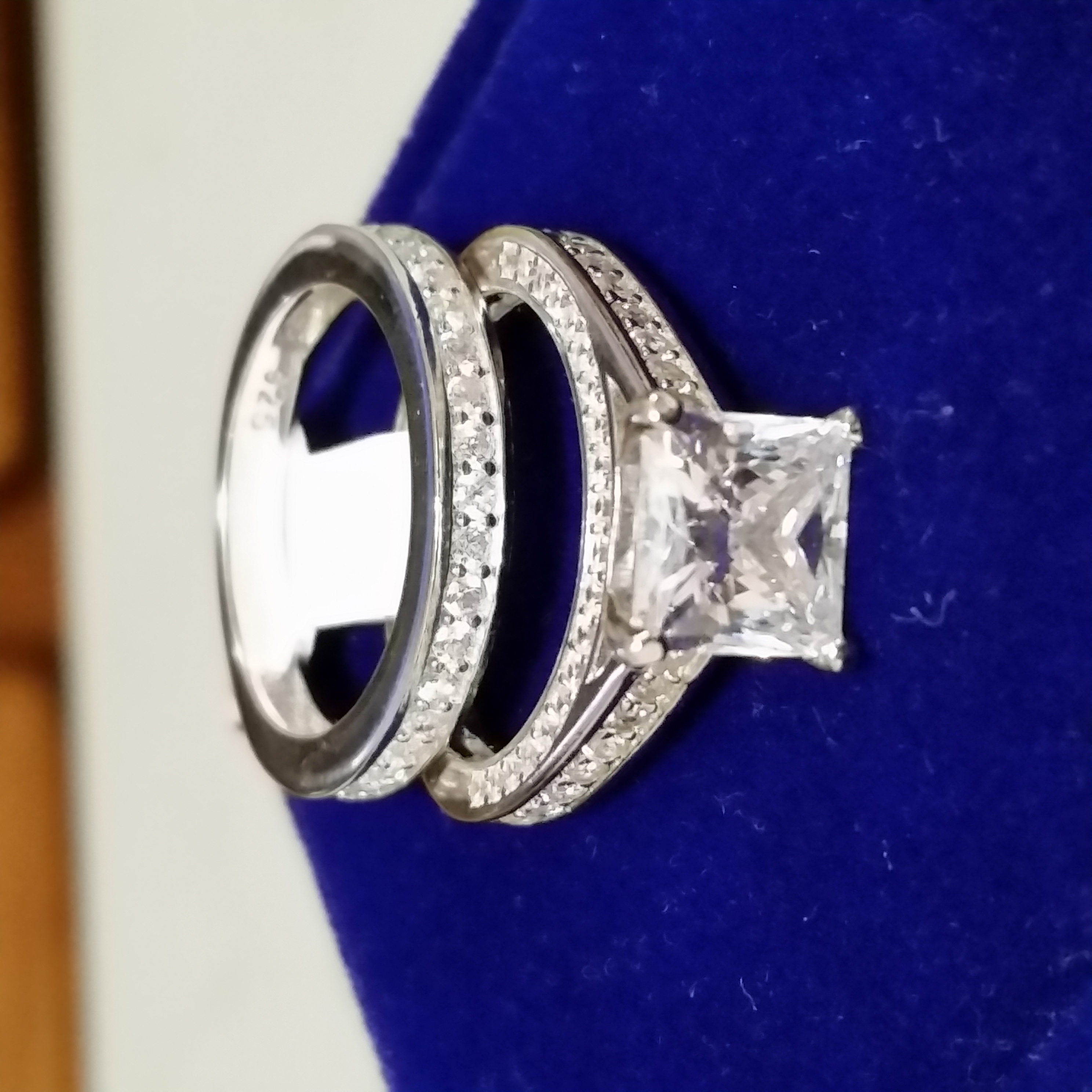 2 PC, STERLING SILVER 925, RHODIUM PLATED, 1.5CT PRINCESS CUT S LAB CREATED DIAMOND, SIZE 4.5