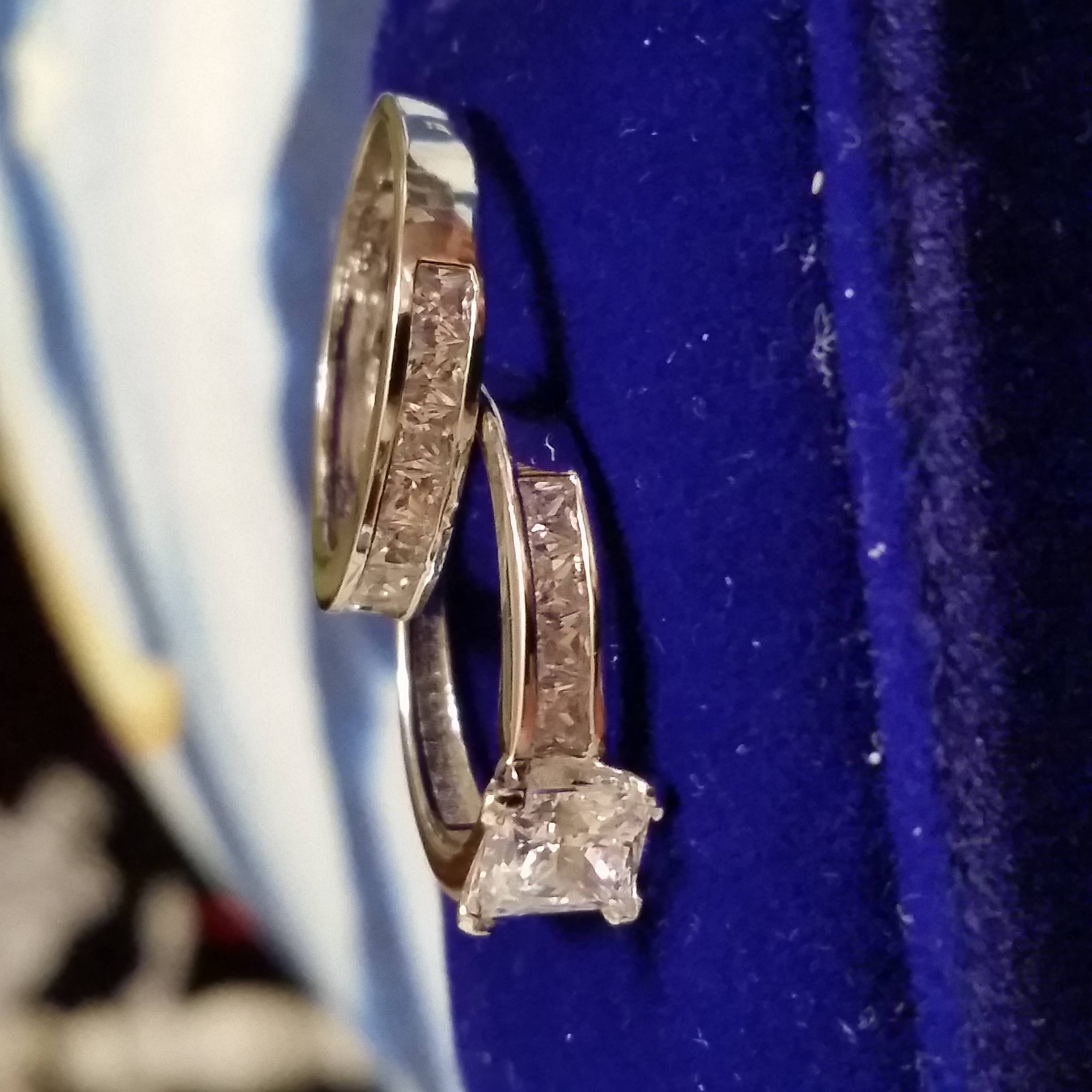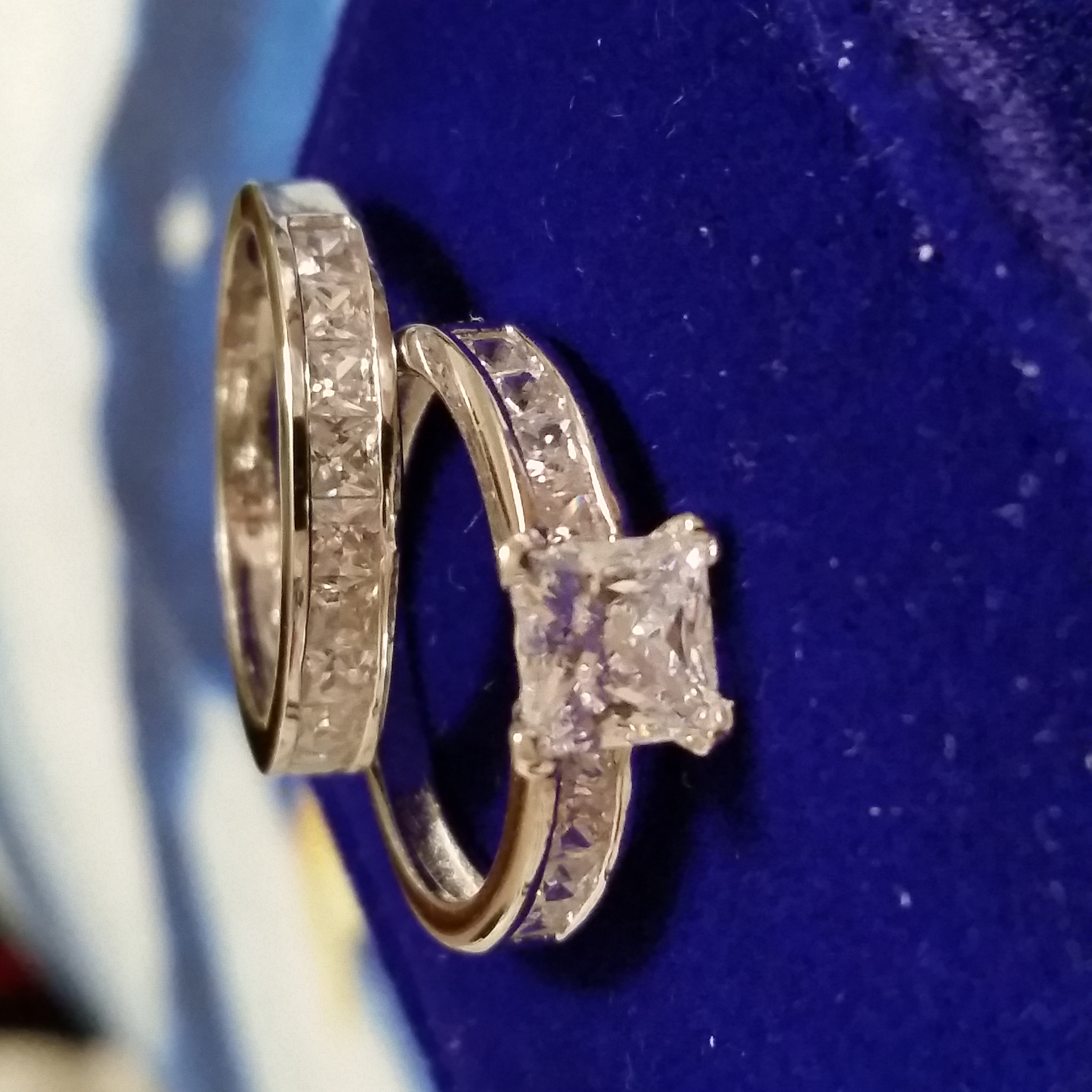 2 PC, STERLING SILVER 925, RHODIUM PLATED, 1CT PRINCESS CUT S LAB CREATED DIAMOND W/ ACCENTS , SIZE 7