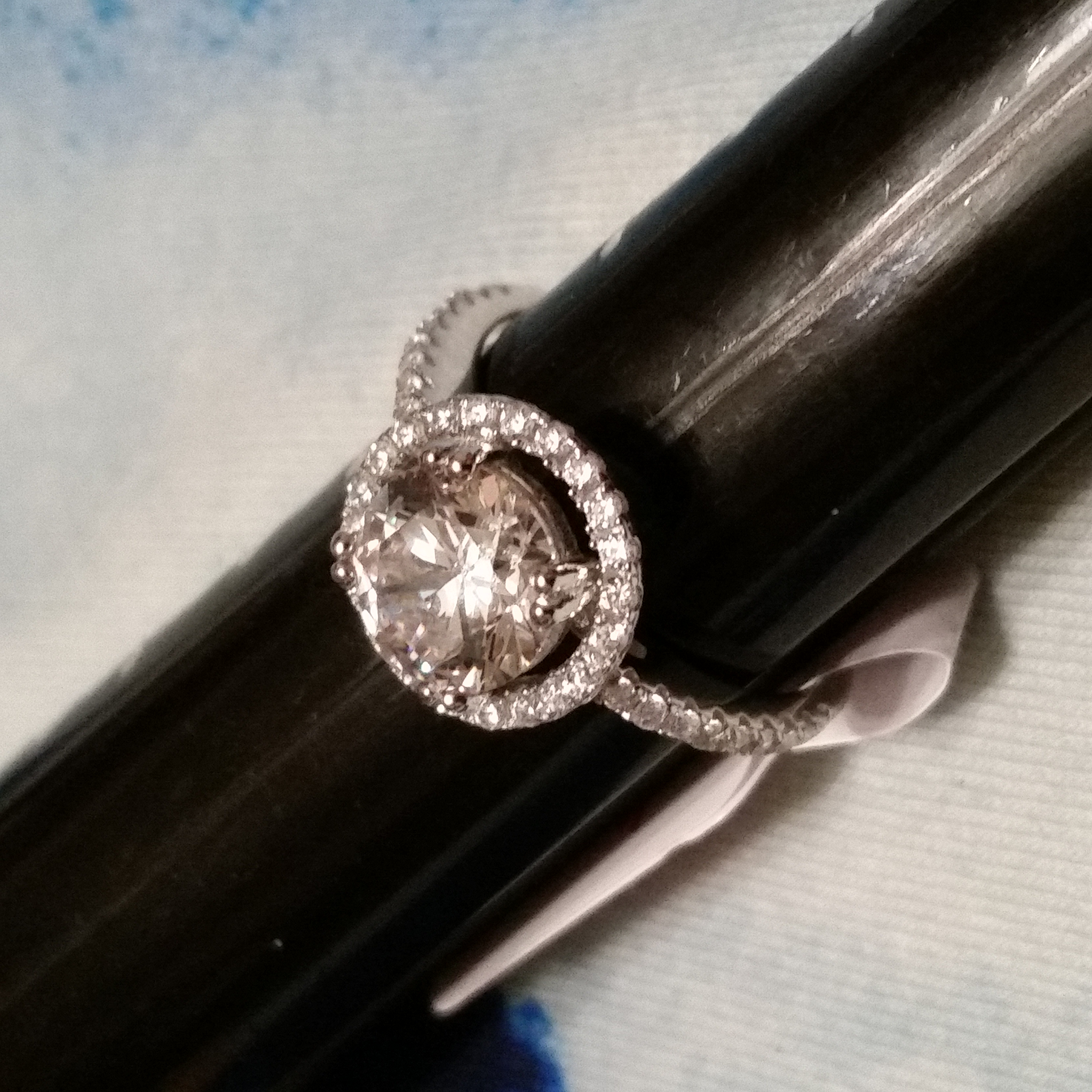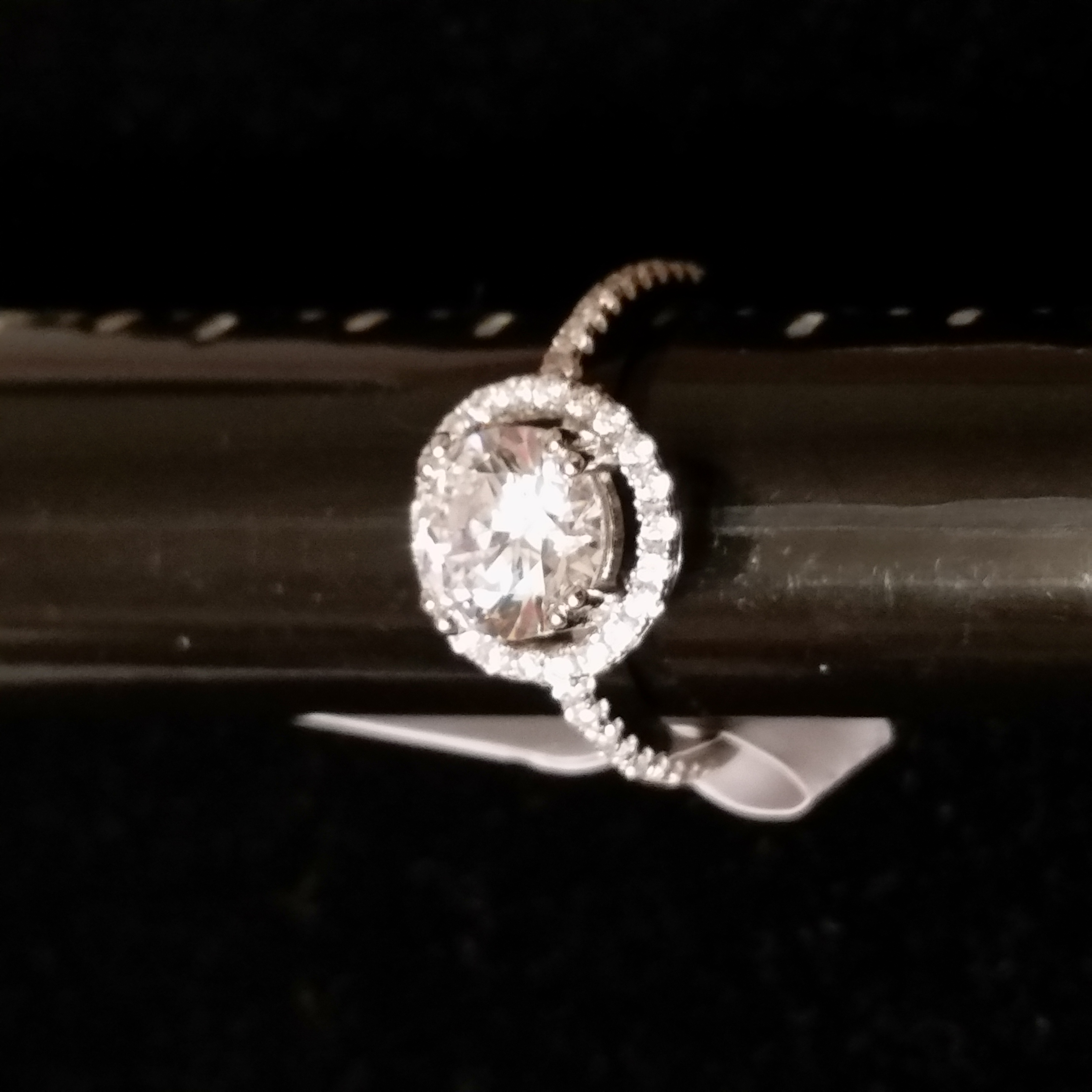 STERLING SILVER 925, RHODIUM PLATED, 1.25CT ROUND LAB CREATED DIAMOND HALO STYLE, W/ ACCENTS SIZE 7