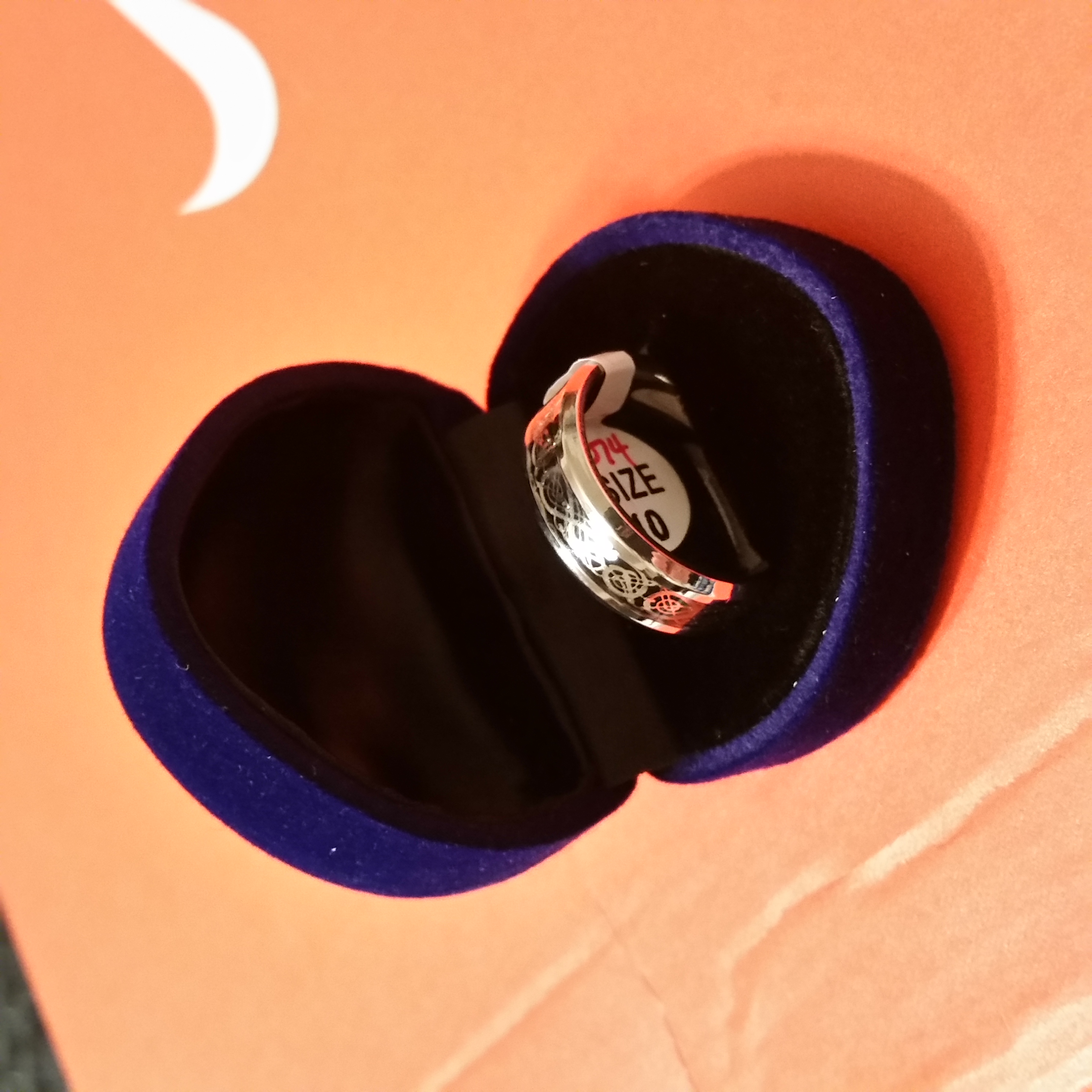 Tungsten steel ring with silver plated DRAGON design in center. Ring is very smooth and sleek. Wont cut into your skin. Size 9. I offer free shipping and credit card payment through PAY PAL (invoice to your email with payment options) to those who are to far for pick up or delivery